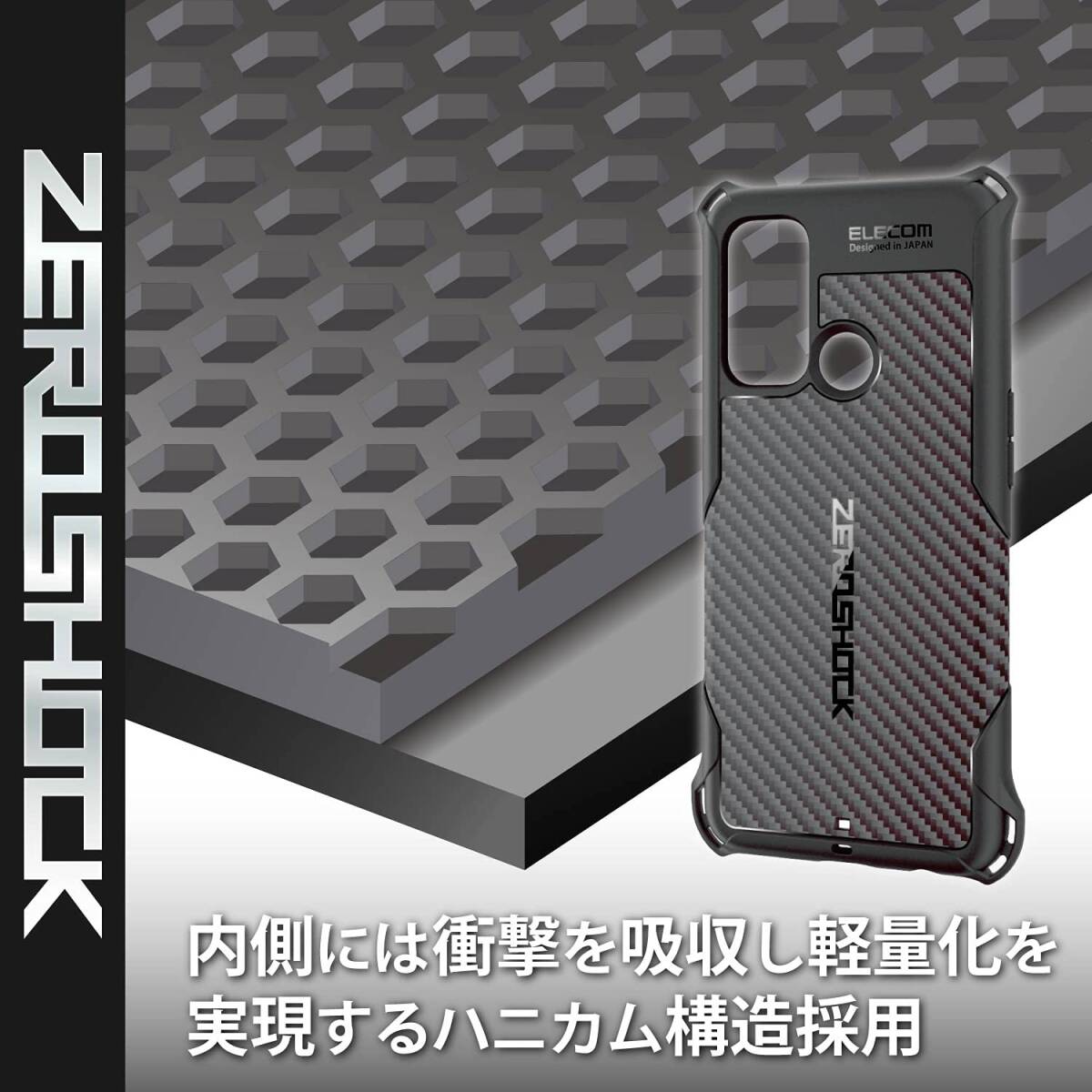 ■ ケース背面から側面にかけてカーボン調のグリップテクスチャを施すことで、滑りにくくし持ちやすさを向上しています。