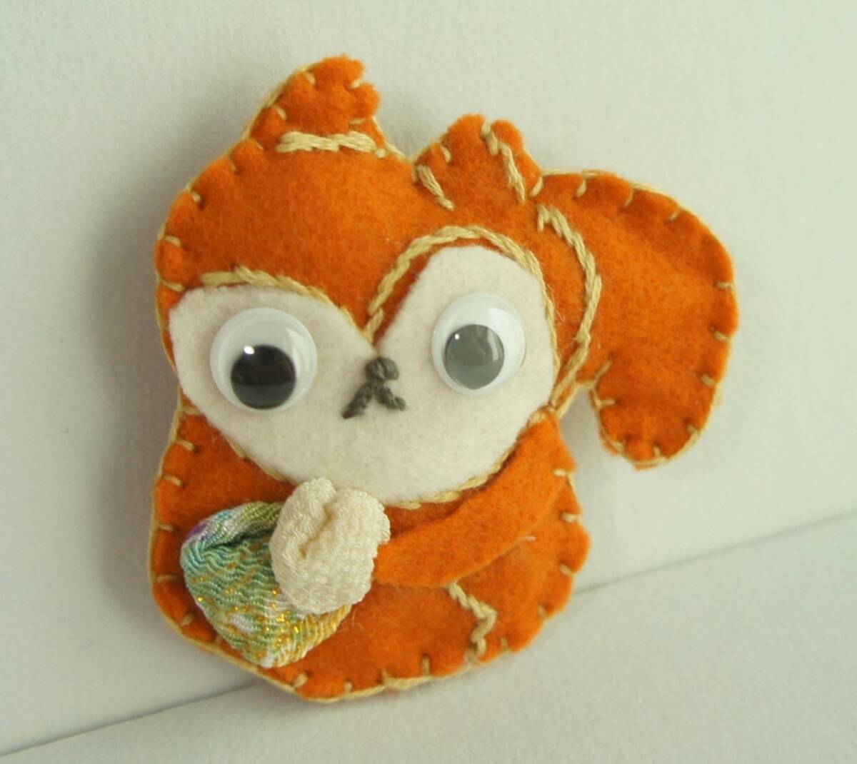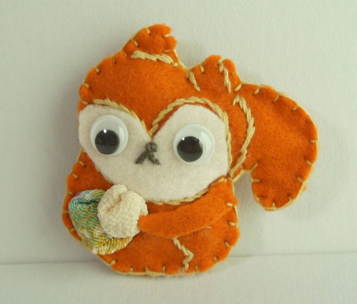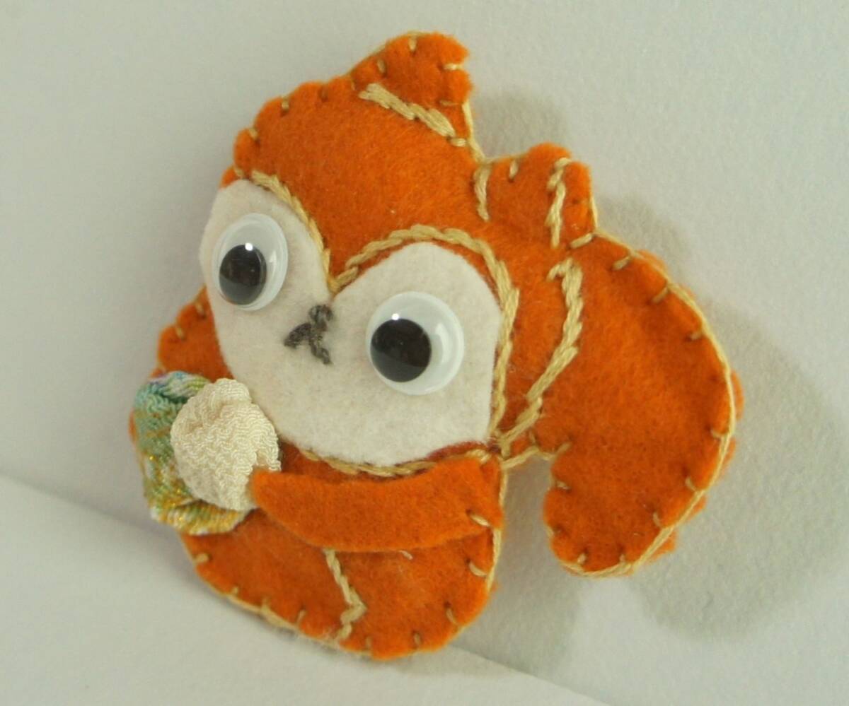 ♪ ハンドメイド ブローチ りす リス フェルト 動眼 綿入り ちりめん つまみ細工