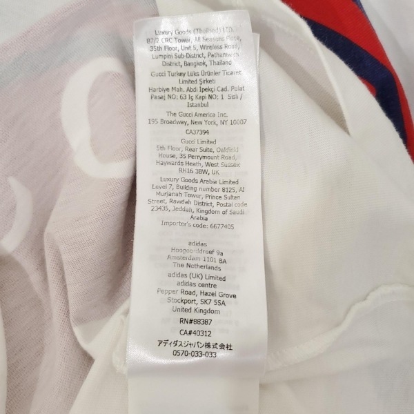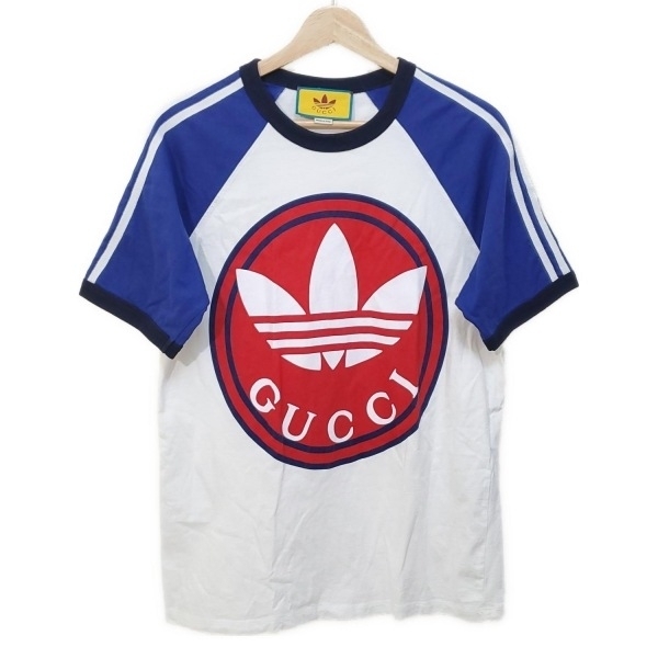 グッチ GUCCI 半袖Tシャツ サイズXS 722938 XJE1F - 白×ブルー×レッド アディダスコラボ 美品 トップス