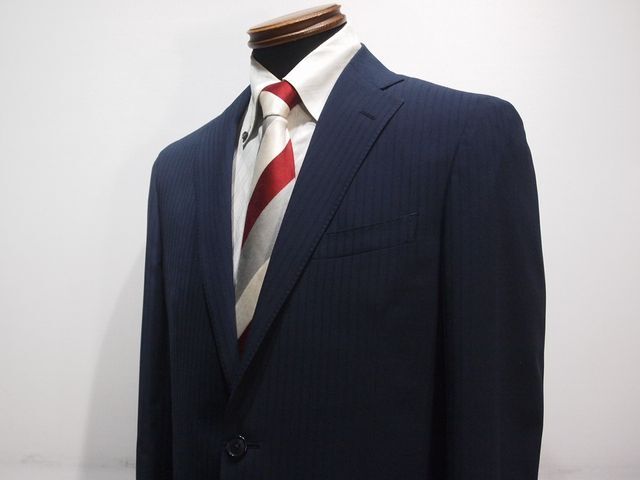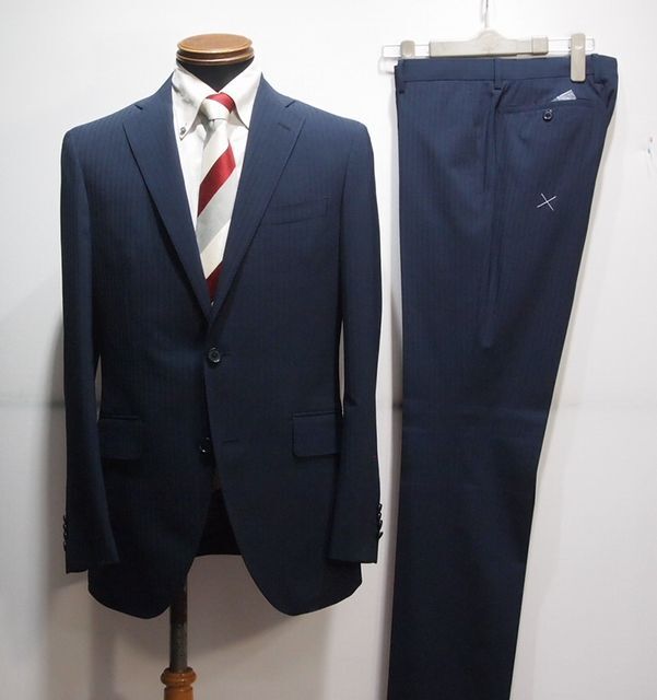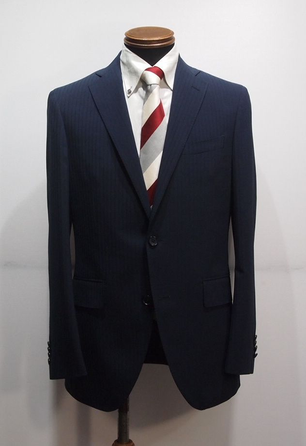新入荷■こだわり商品■5635■背抜きスーツ 本台場・本切羽 ノータック スタィリシュ2っ釦スーツ■YA7■ネイビー■シャドーストライプ■