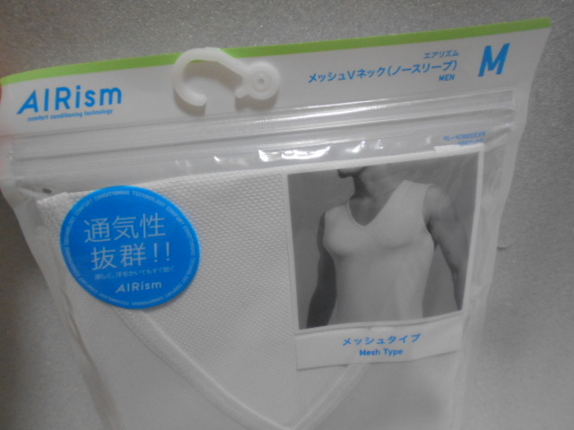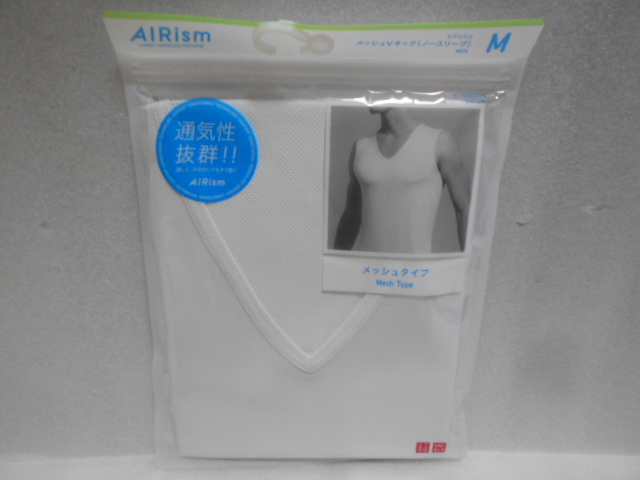 ユニクロ UNIQLO エアリズム AIRism メッシュVネック ノースリーブ メッシュタイプ Mサイズ ホワイト MEN