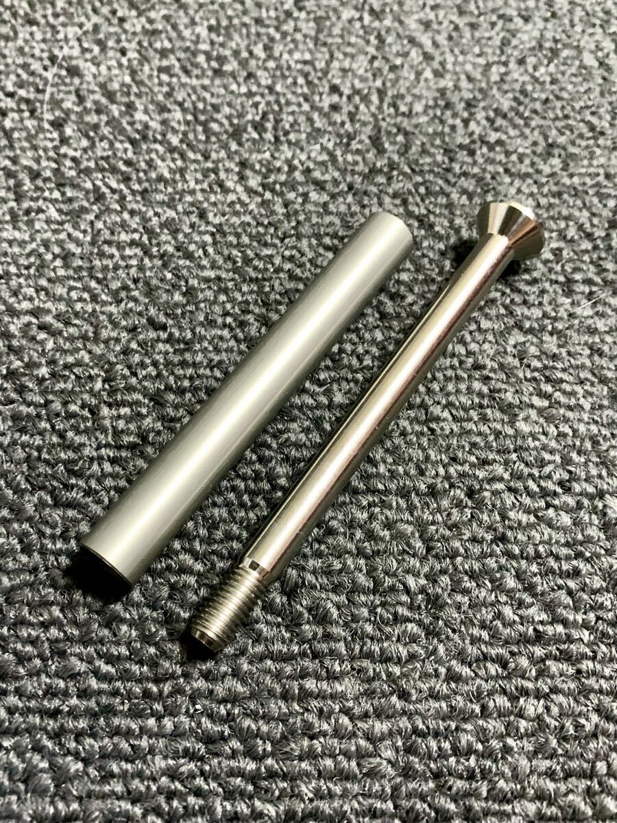 ボルトはチタン合金の中で一番の硬さでもある64チタンを削り出して製作しており、