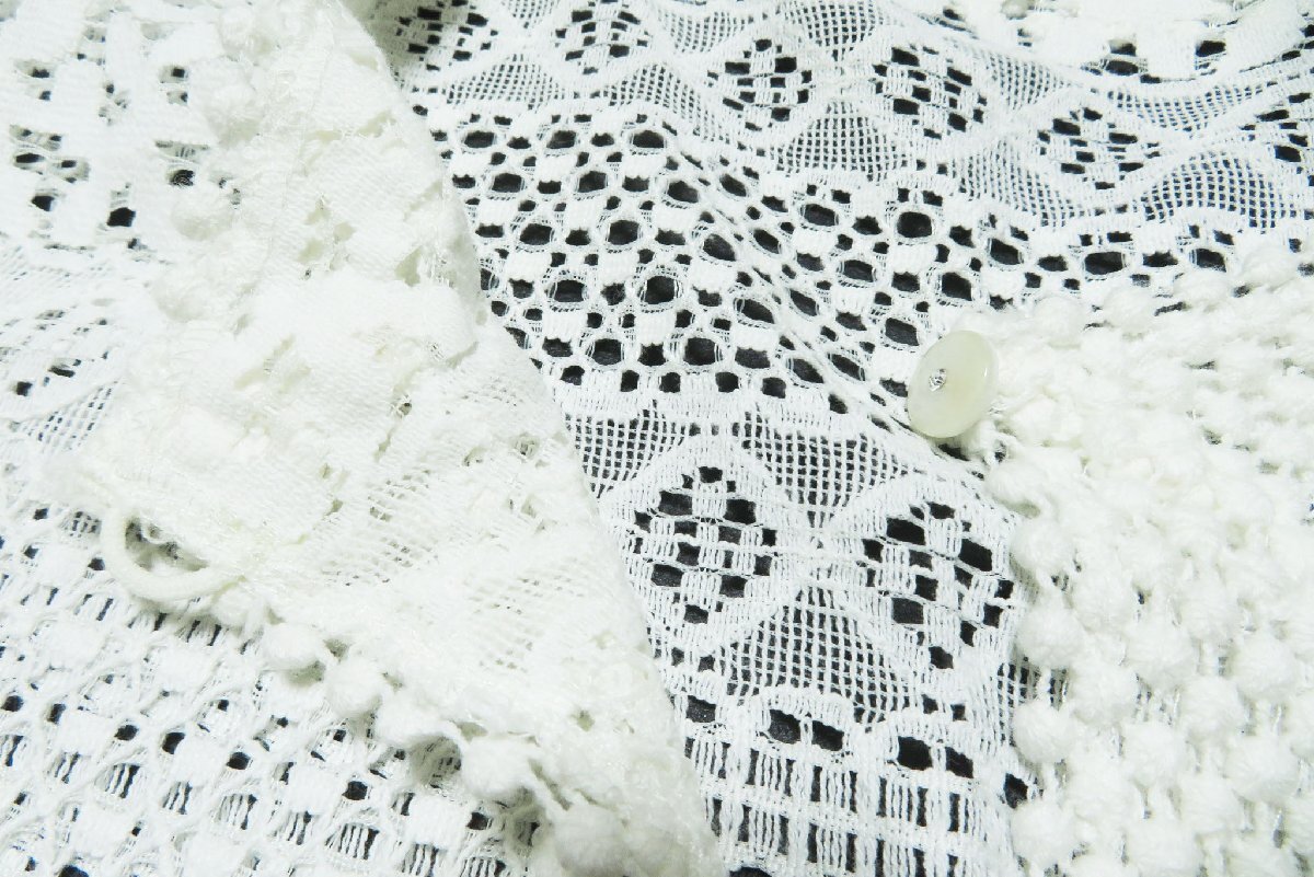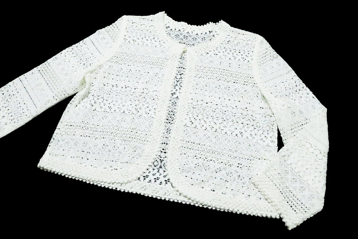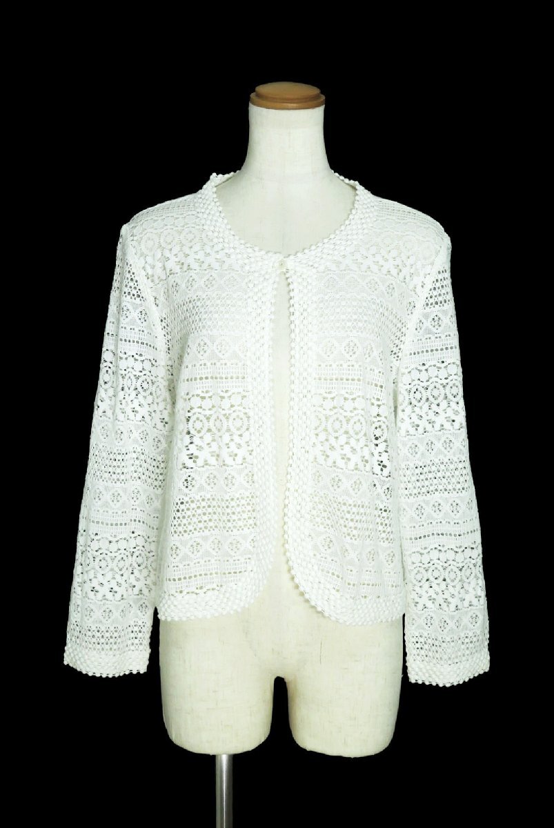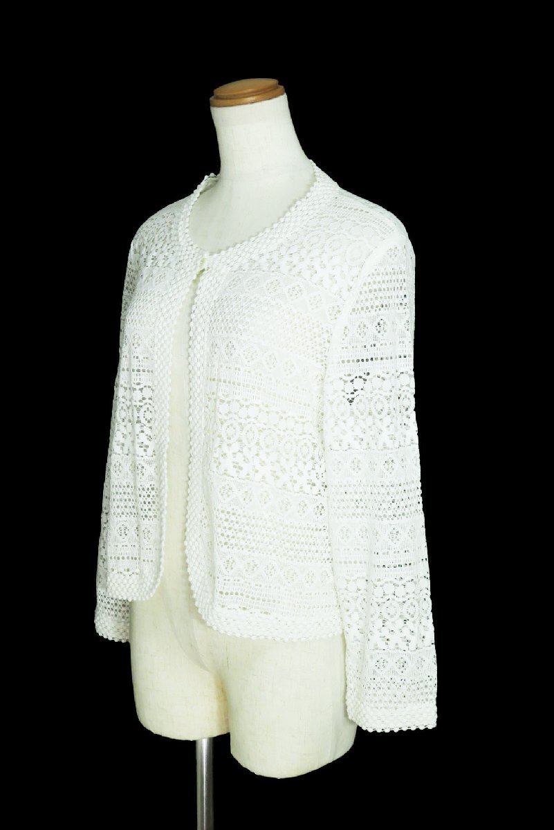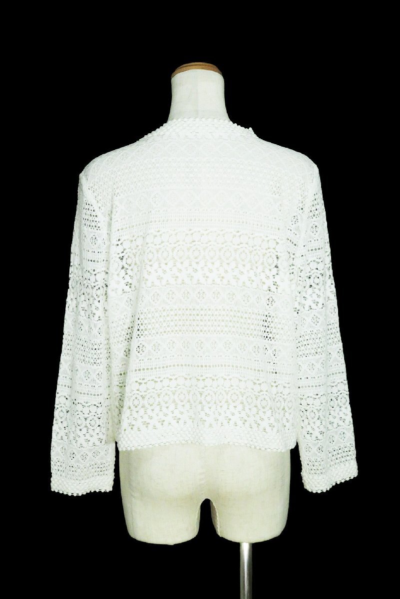 ☆美品☆NOA-GEノアジェ/洗えるコットン長袖レースカーディガン:L/白nl718