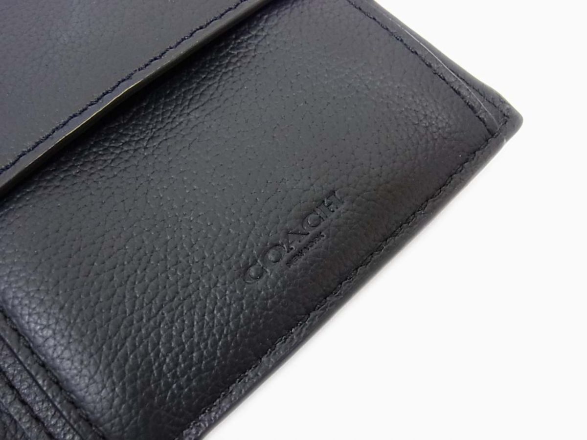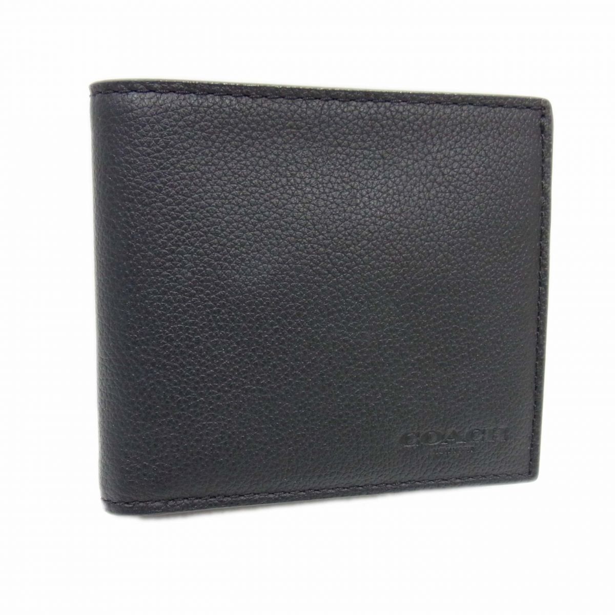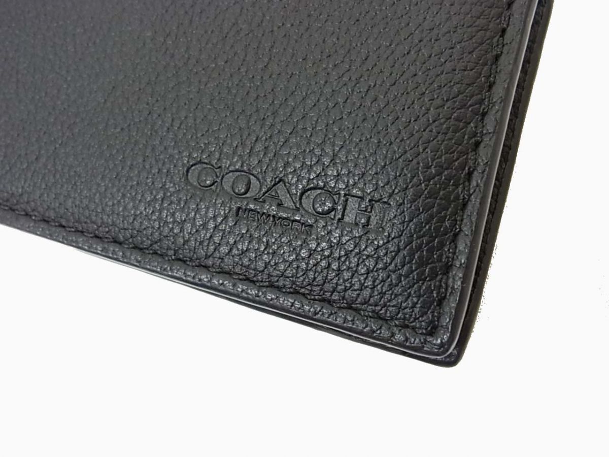 メンズ◇COACH F75003 二つ折り レザー財布 ロゴ刻印入り コイン ウォレット ブラック コーチ ロゴ刻印入り