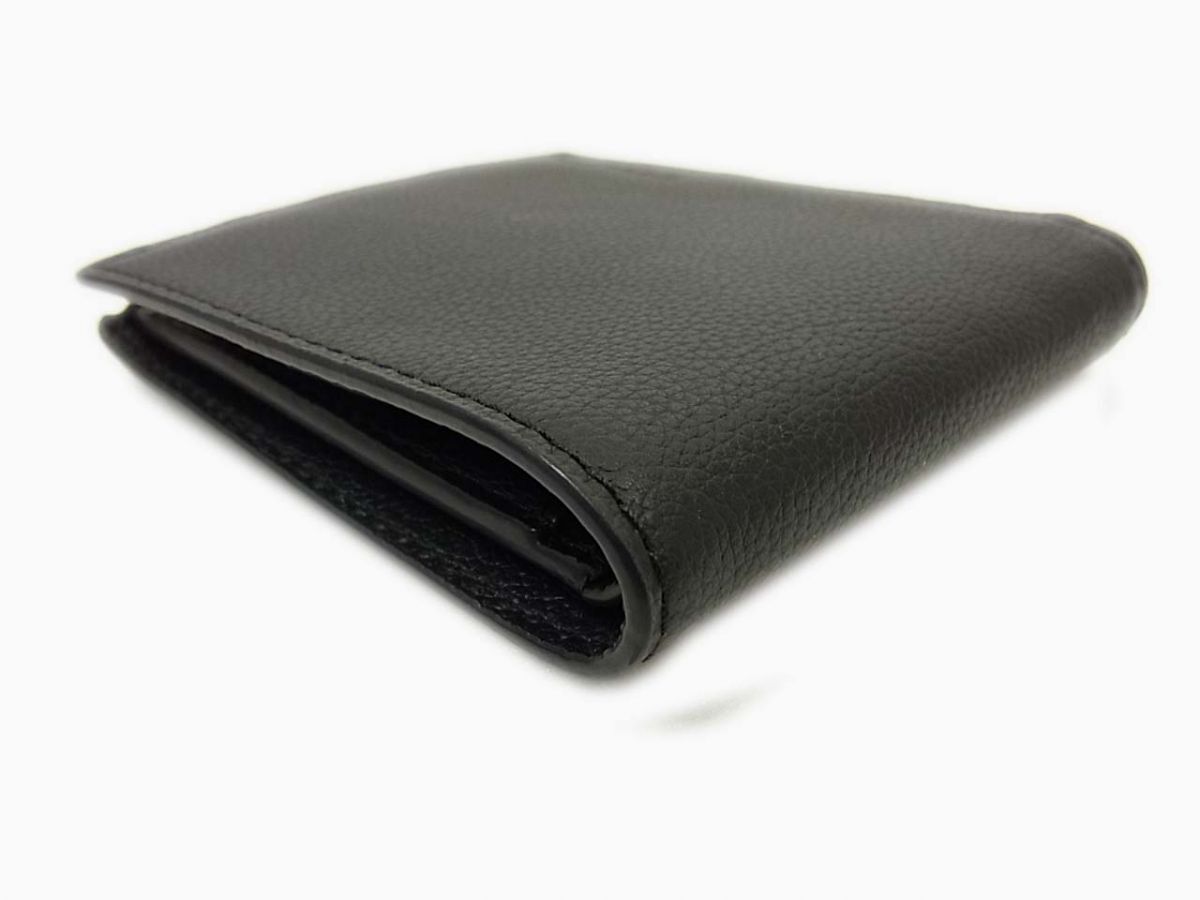 備考皺のある表面の仕上げの上質なレザー素材で作られた、シンプルなデザインで高級感溢れる素敵なメンズタイプの2つ折り財布です。