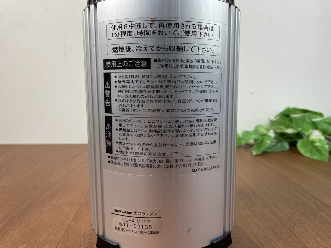 【動作品】UNIFLAME ユニフレーム ガスランタン UL-X クリア 日本製 折りたたみ式 CB缶対応 アウトドア キャンプ用品 照明 管Y1982N