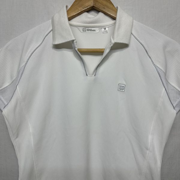 〇Wilson ウィルソン ショート スリーブ 半袖 ポロ シャツ M 白 ホワイト ソフト テニス バトミントン スポーツ トレーニング ウエア