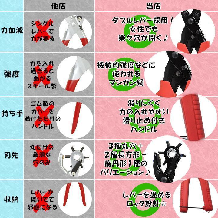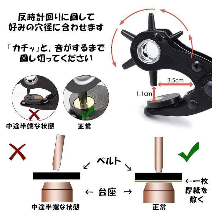 ベルトはもちろん、バッグ、紙、ダンボール、布製品、レザークラフト、ゴム製品、靴、その他手軽に穴を開けることができるようになりますよ(^^)
