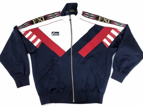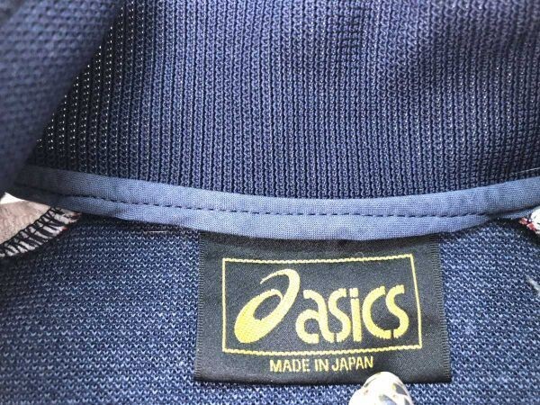 asics アシックス オールド レトロ スポーツ 古着 ロゴワッペン ジャージ トラックジャケット メンズ ラグランスリーブ 日本製 XO 紺 白 赤です。