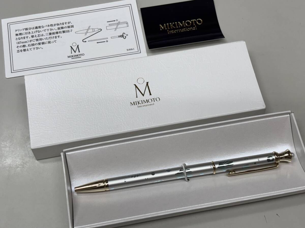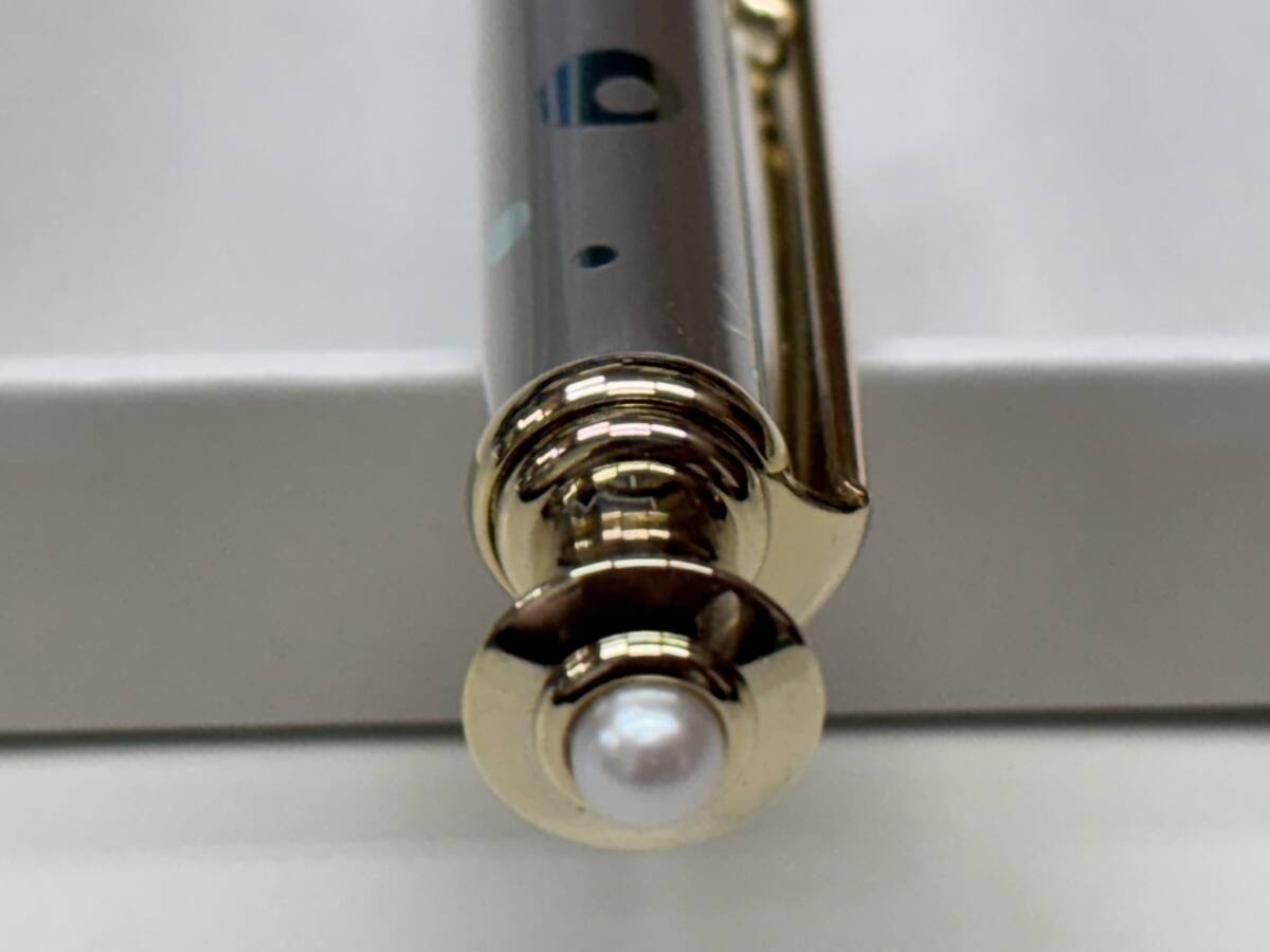 ★未使用品★ MIKIMOTO ミキモト ボールペン ブルー × ゴールド 天冠にパール Mロゴ刻印 文房具 箱付き