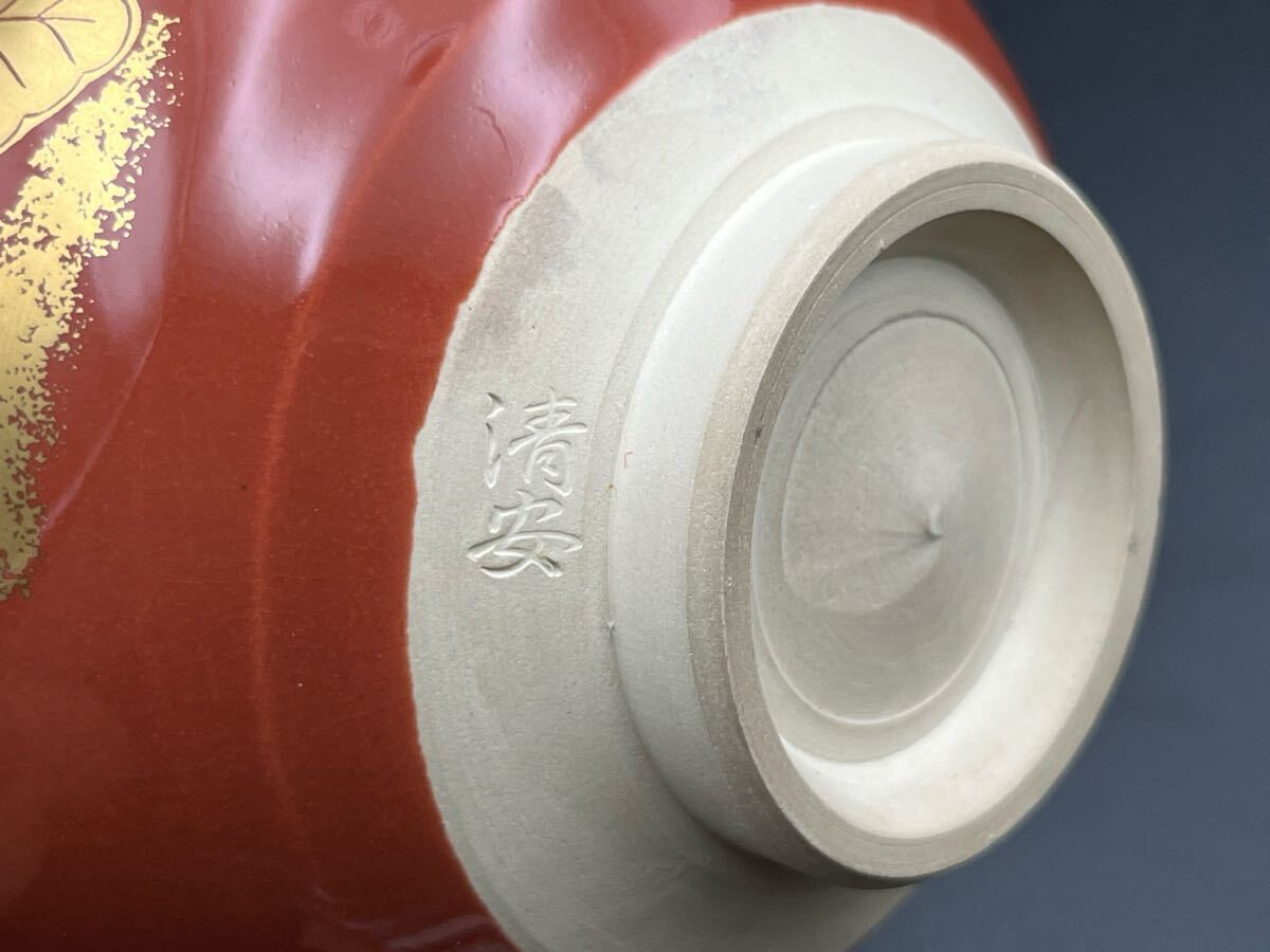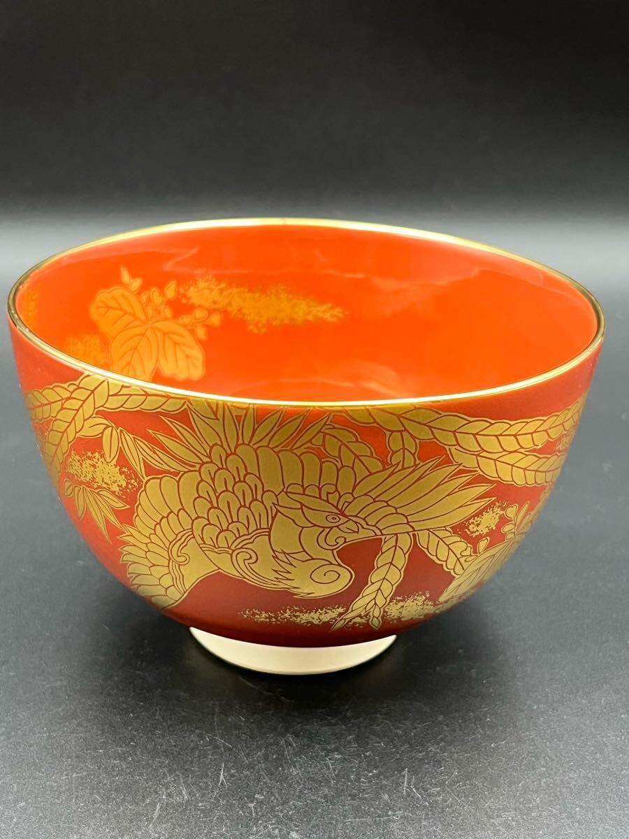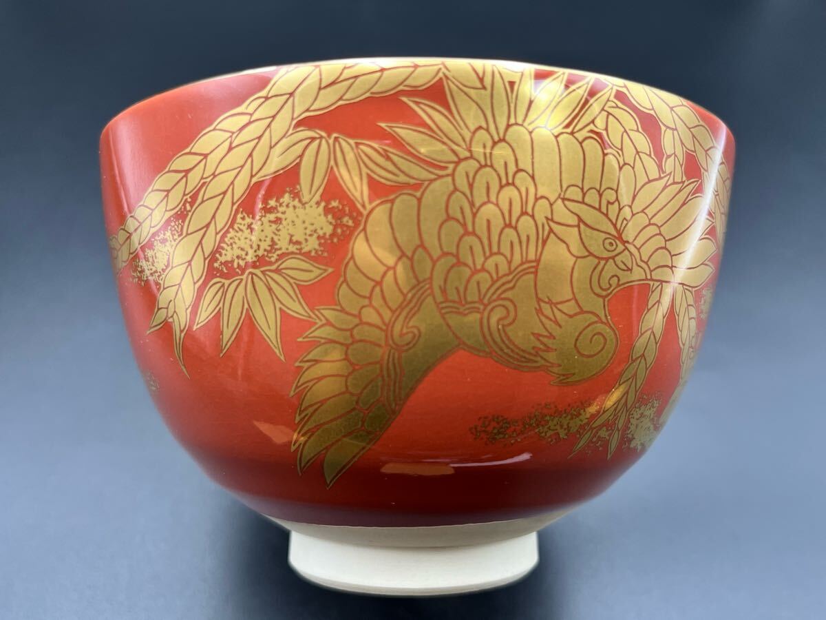 abau082618 京焼 鈴木清安 造 赤絵 金手鳳凰 茶碗 茶道具