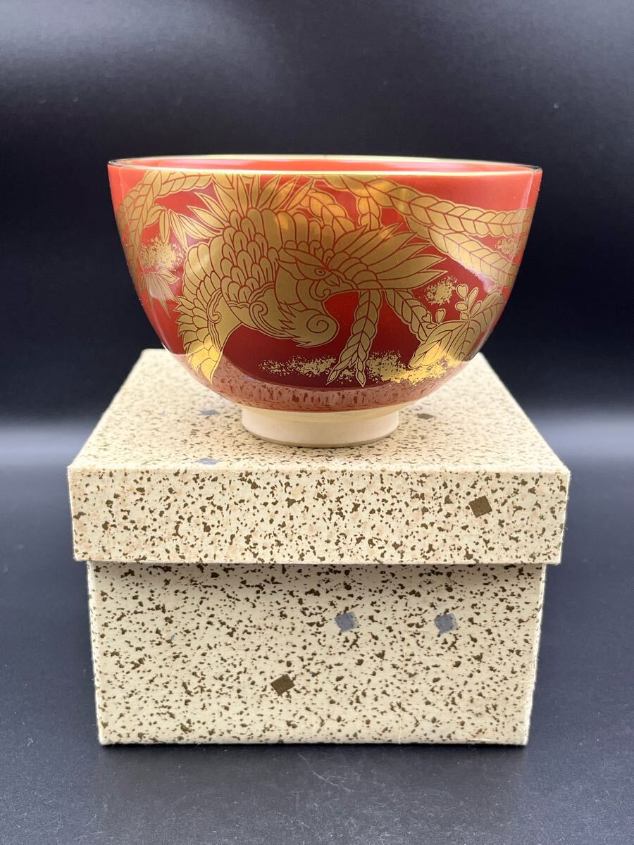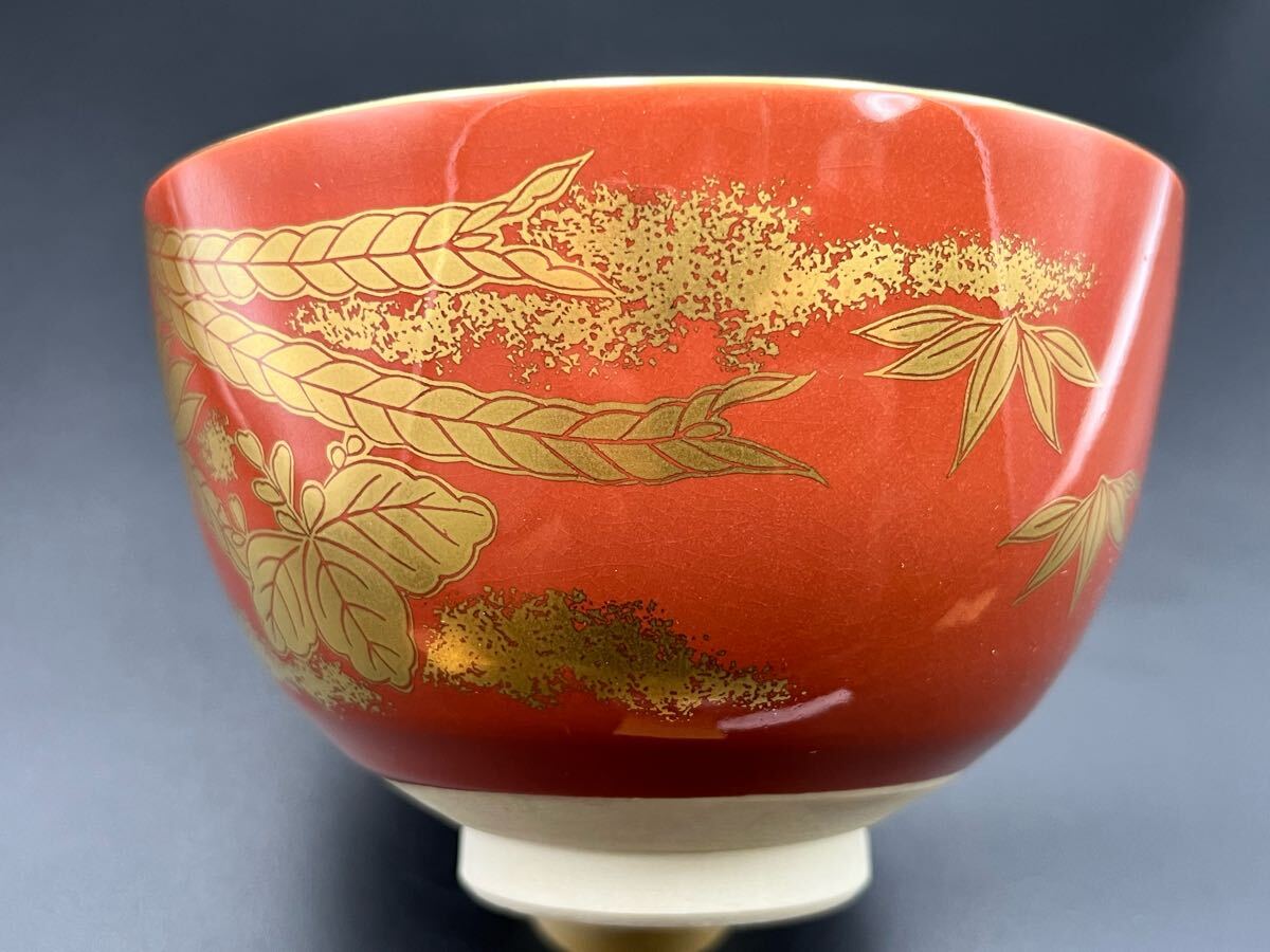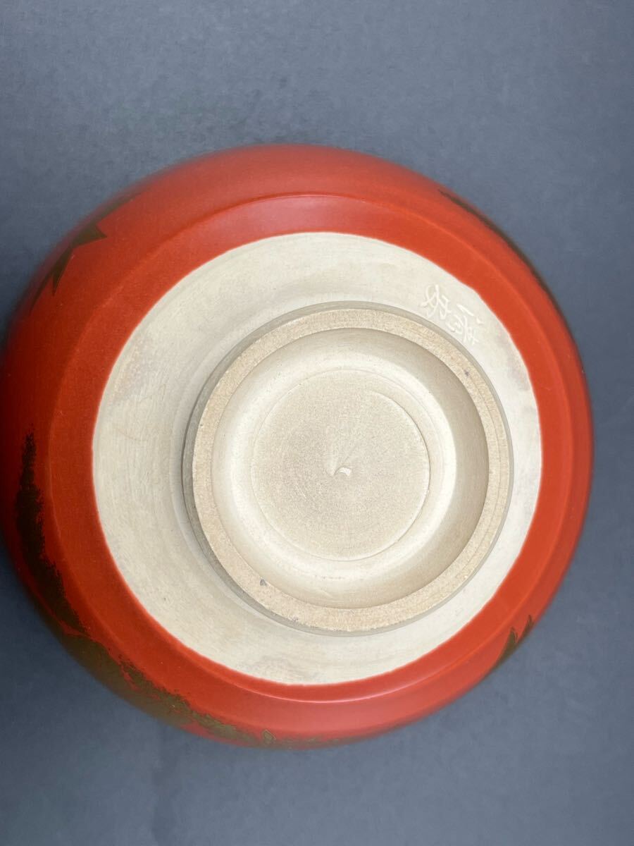 abau082618 京焼 鈴木清安 造 赤絵 金手鳳凰 茶碗 茶道具