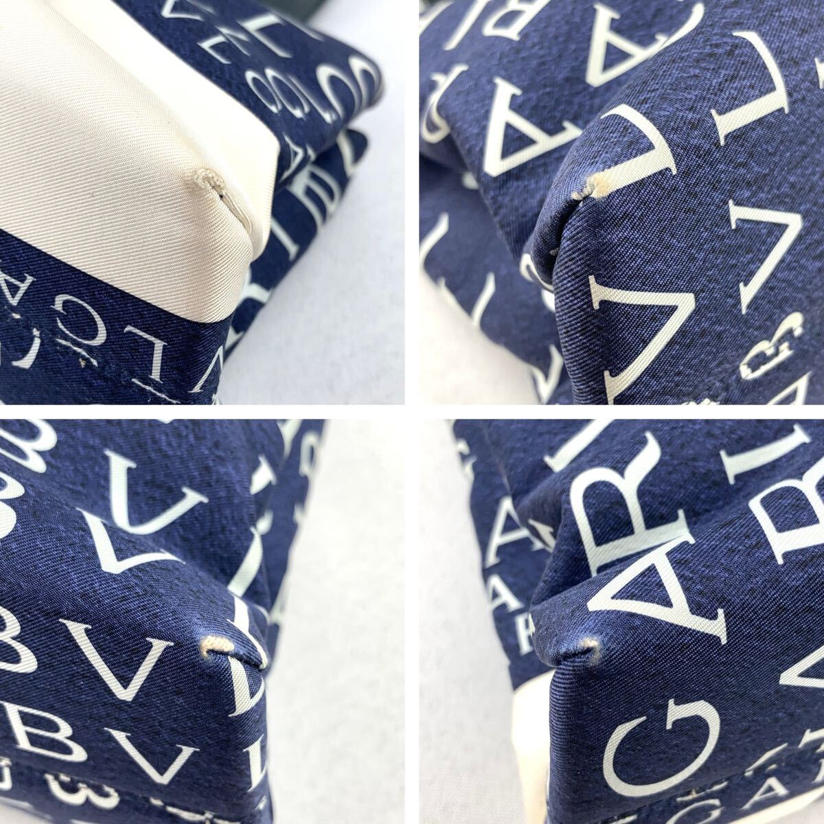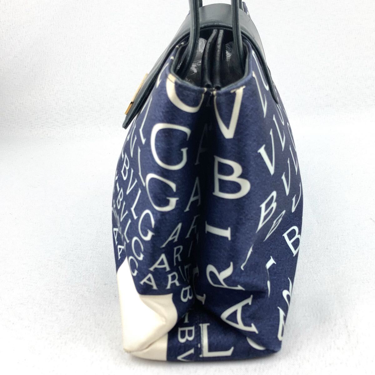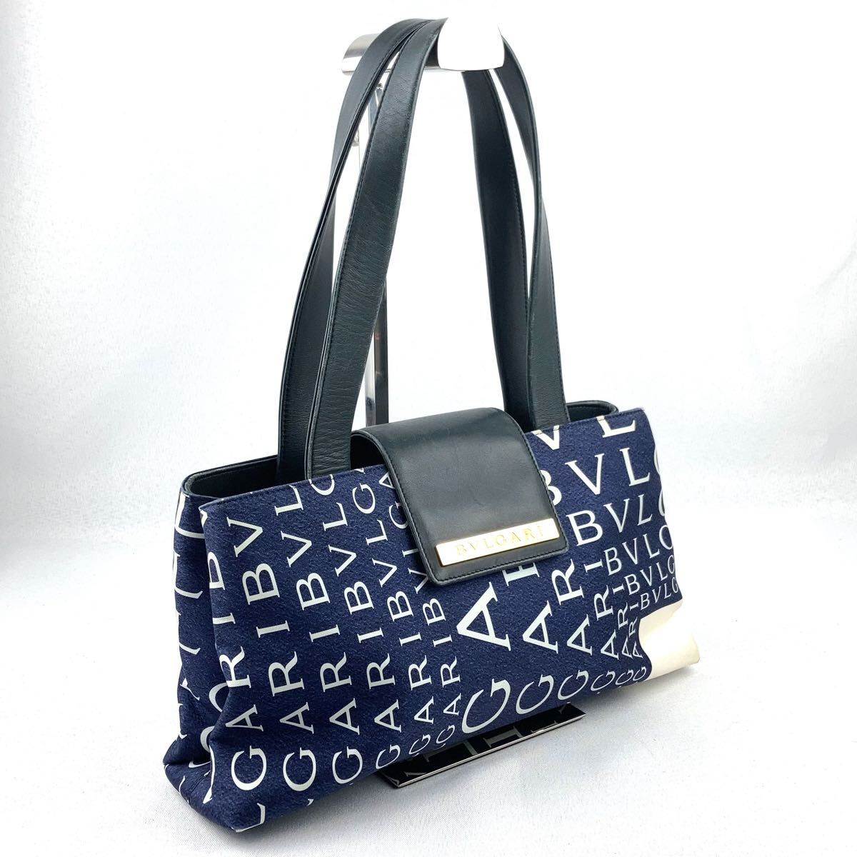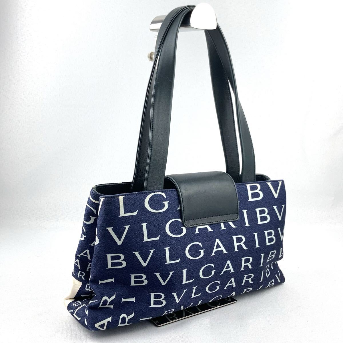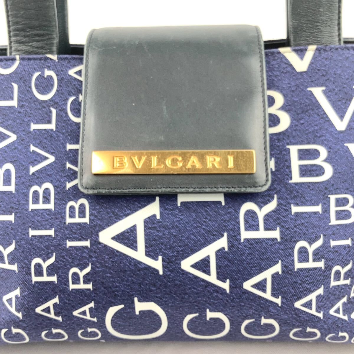 BVLGARI ハンドバッグ ロゴマニア トートバッグ ネイビー ブルガリ キャンバス