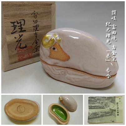 【K-9】讃岐 富田焼 吉金窯 紀太理光 「未」 香合 共箱付 茶道具 | |||