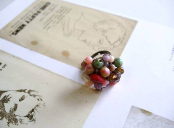 女の子の時間・・シリーズです♪やさしい色を集めて・・小さな天然石やチェコビーズを集めて可憐な表情のリングです♪ターコイズやアフリカンオパール や珊瑚やアメジストなど3ミリから4ミリ位の小粒の天然石は チェコビーズやてんとう虫のビーズを合わせてシャワーヘッドに留めつけています♪ヘッドの大きさは3センチ位です♪fリングはフリーサイズです♪お揃いのネックレスも出品しています♪シンプルで長く着けていただける デザイ ンを考えて作りました♪ハンドメイドをご理解頂いてノークレーム、ノーリターンでお願いします