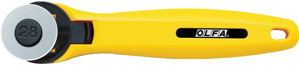回りのきく直径28mm円形刃を装着したロータリーカッター。
