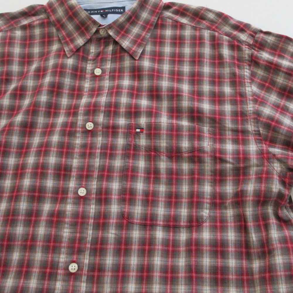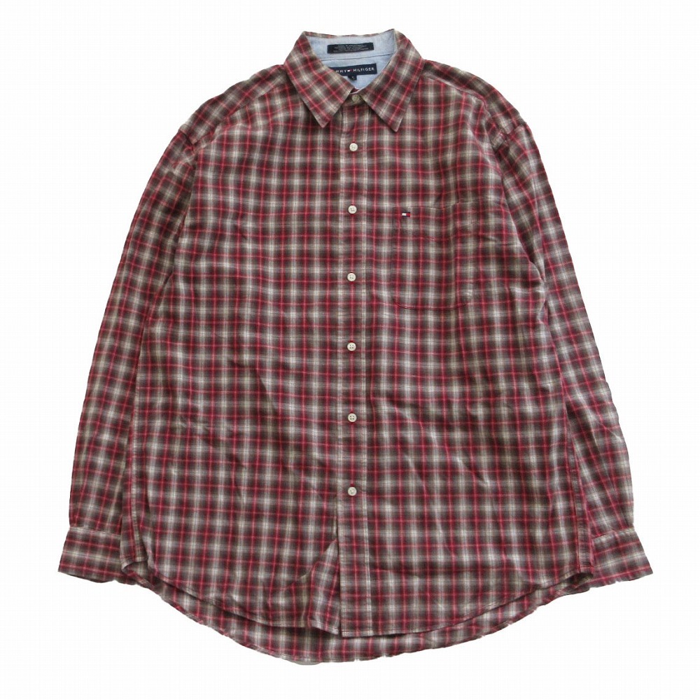 【TOMMY HILFIGER トミーヒルフィガー ワンポイントロゴ オンブレチェック柄 シャツ 長袖 レッド サイズM メンズ】 | |