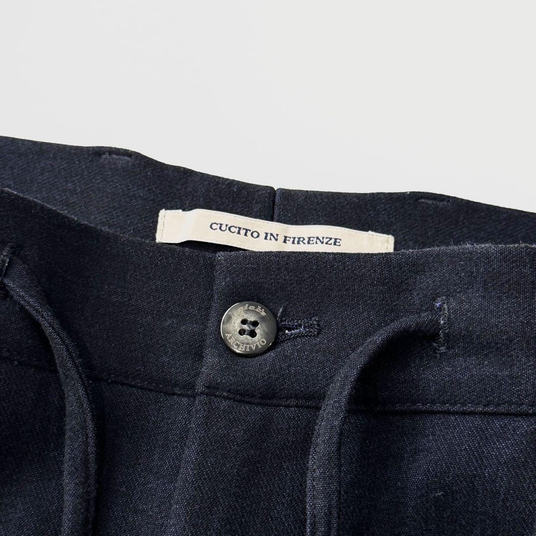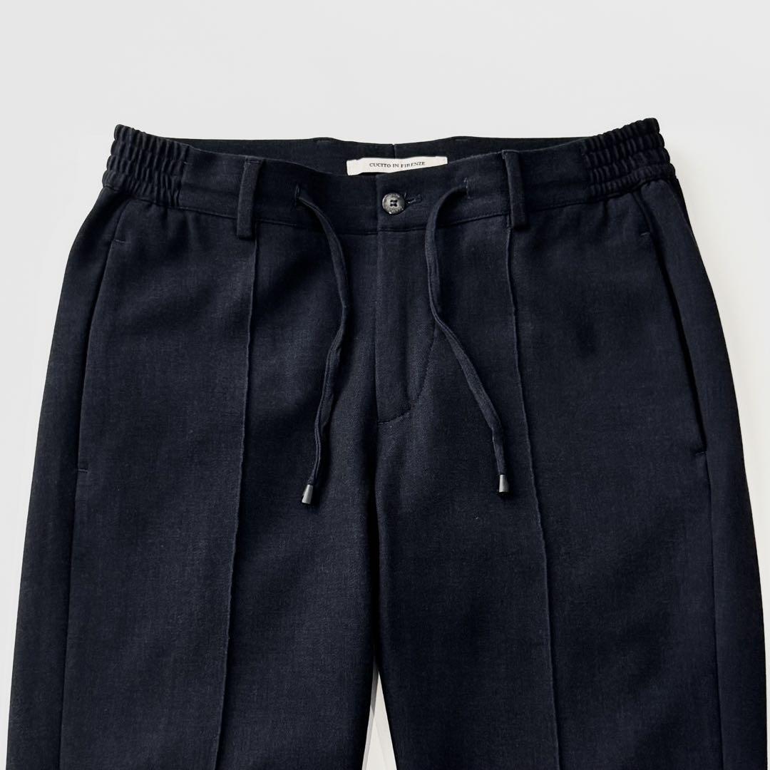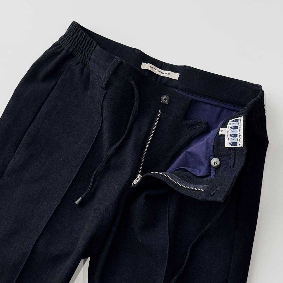 A5984 フレンチツイルジャージー メンズ センタークリース スリム テーパード イージーパンツ ジャージー コットン ストレッチ ドローコード トラウザー スラックス イタリア製 MASACCIO 綿 国内正規