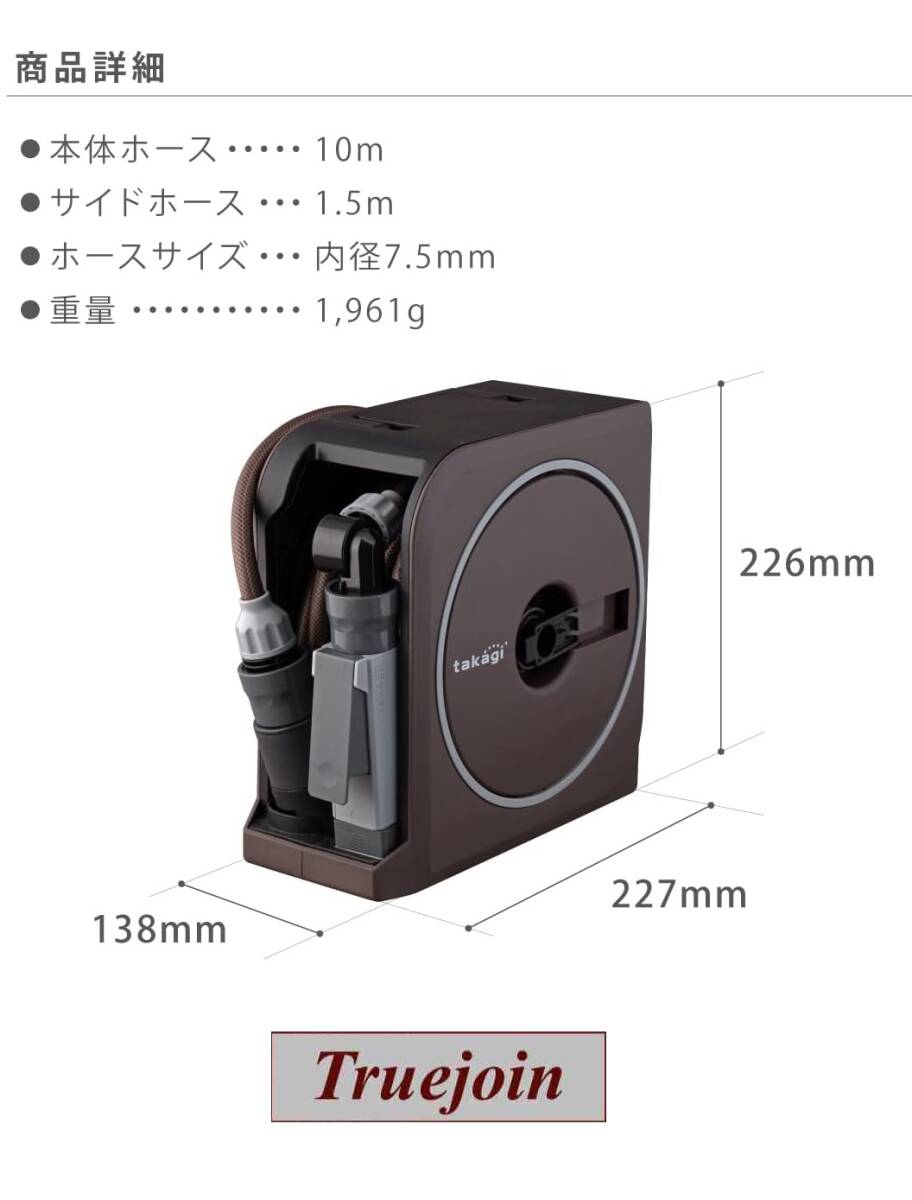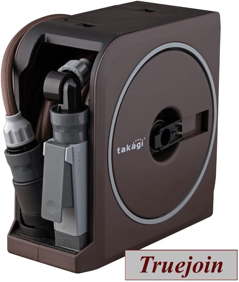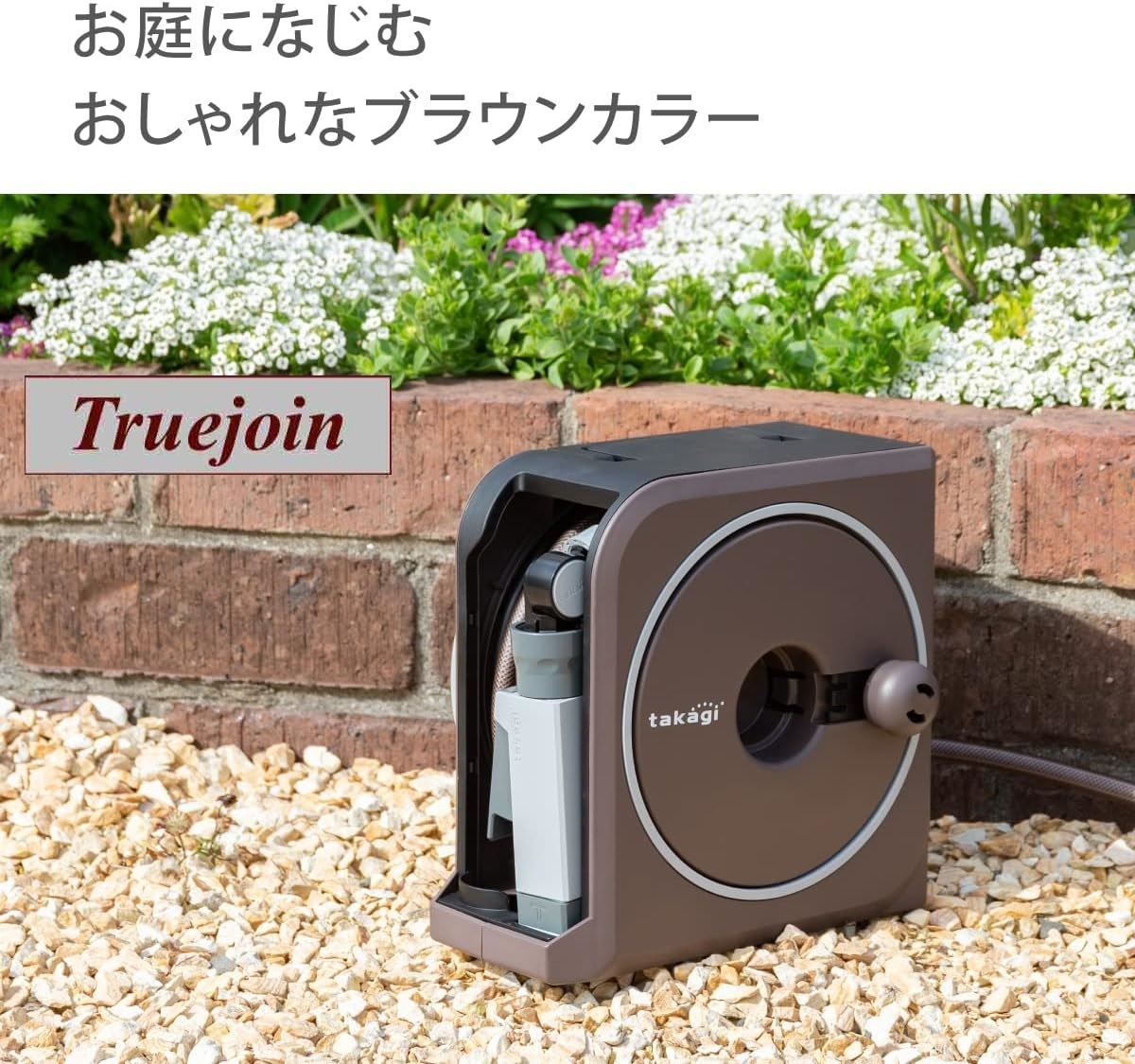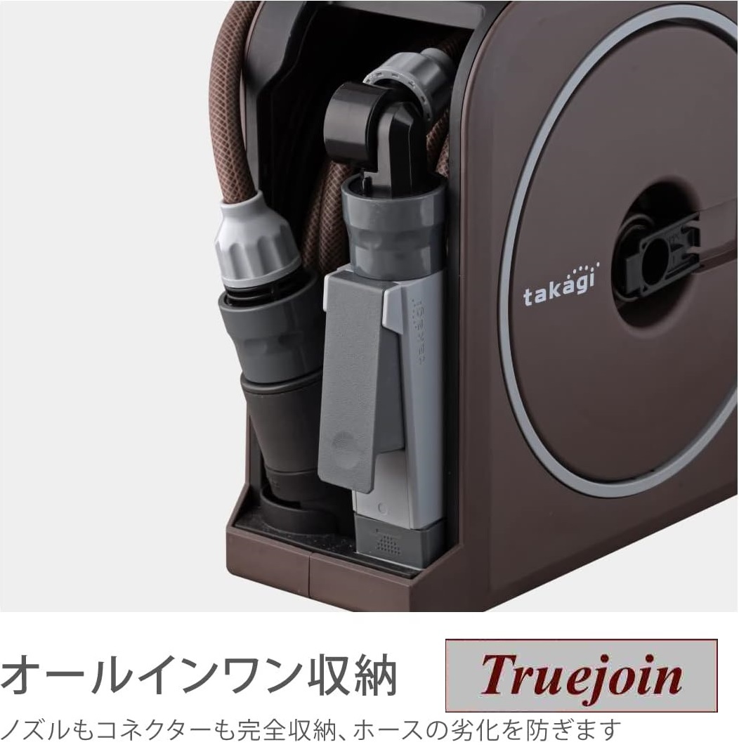ホースをおしゃれに収納 ノズルもコネクターも全てオールインワン収納 ホースリール コンパクトすっきりサイズ 10m ブラウン