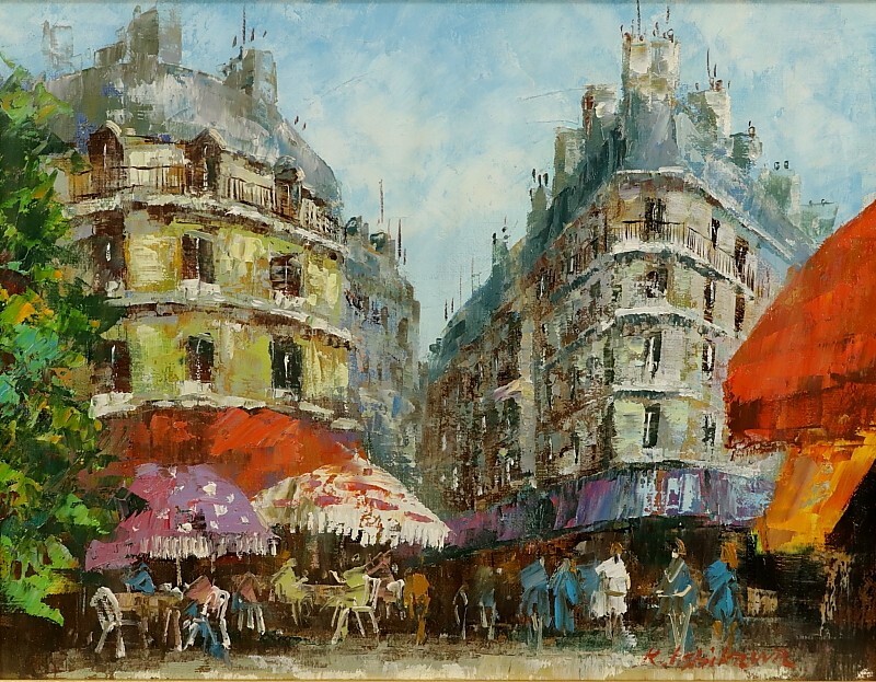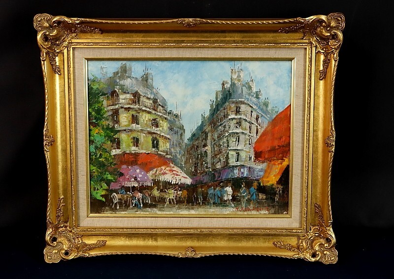 10559■【真作】石川啓司 「パリ風景」 キャンバス 肉筆 油彩 應美会会員 美術年鑑掲載画家 額装
