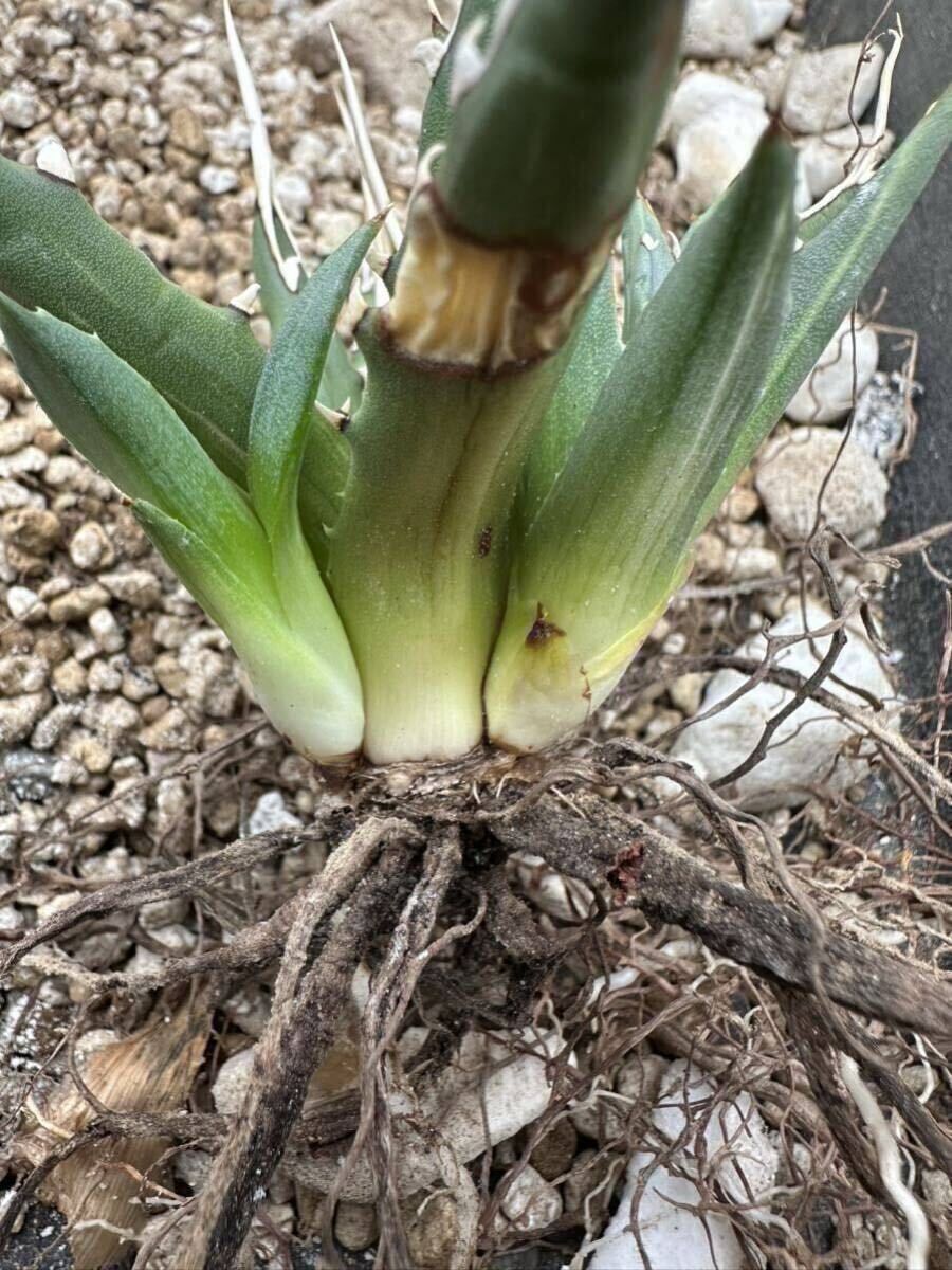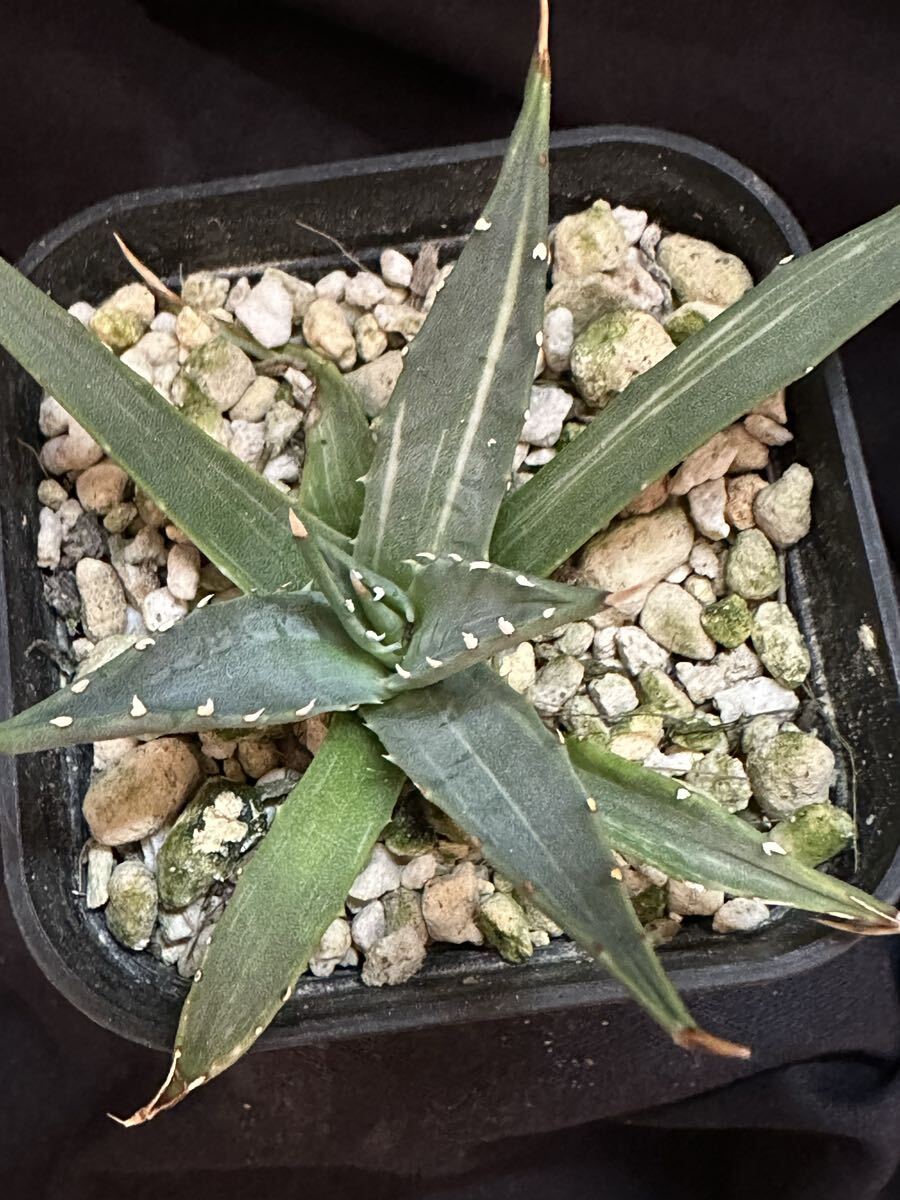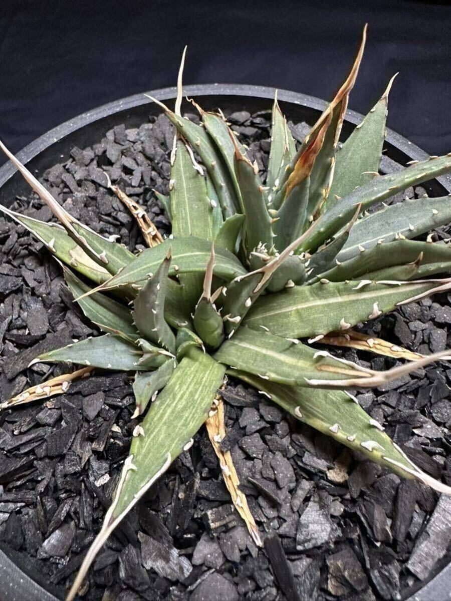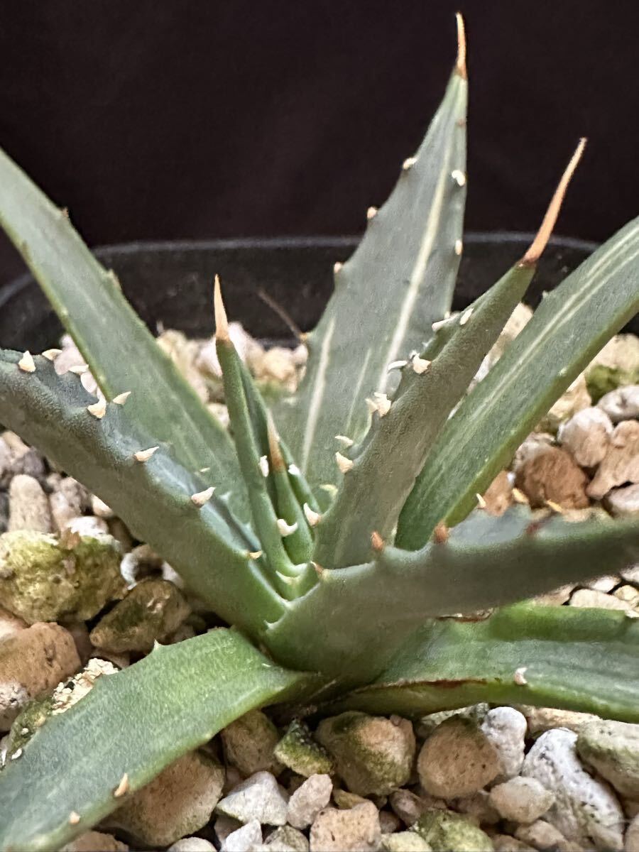 こちらはアガベ ユタエンシス『エボリスピナ錦』の縞斑のカキコになります。