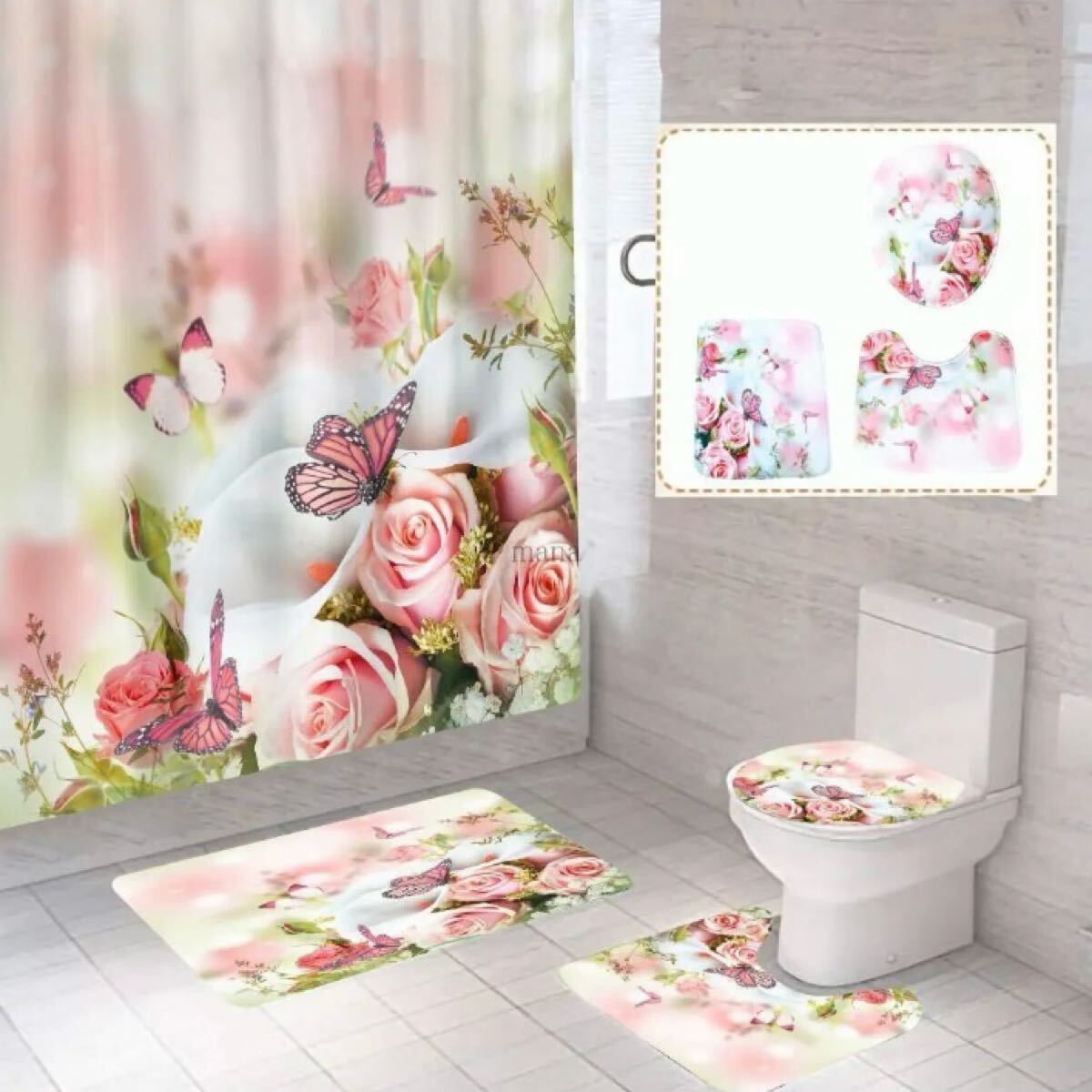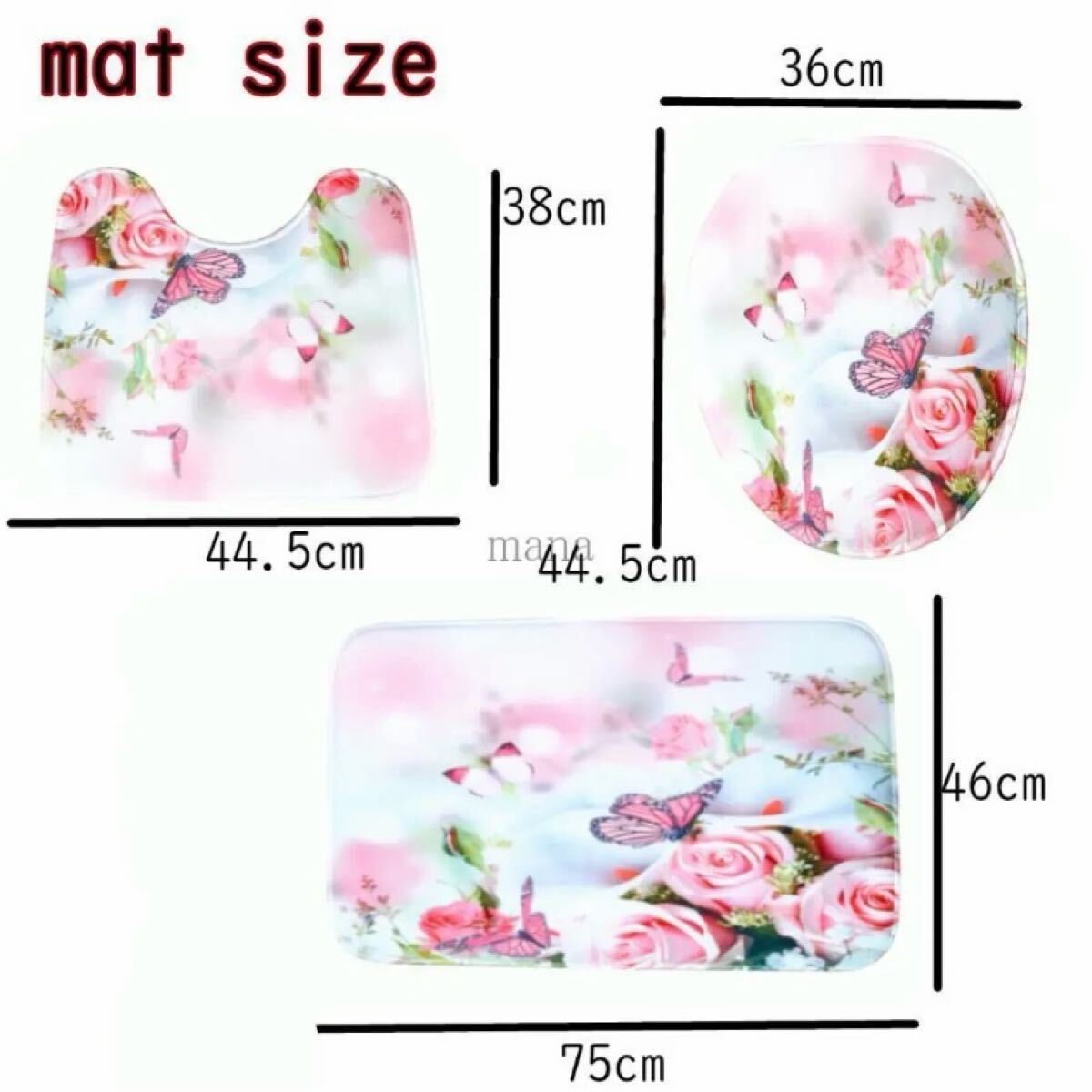 トイレカバー浴室マットバラ3点セット撥水軽量速乾