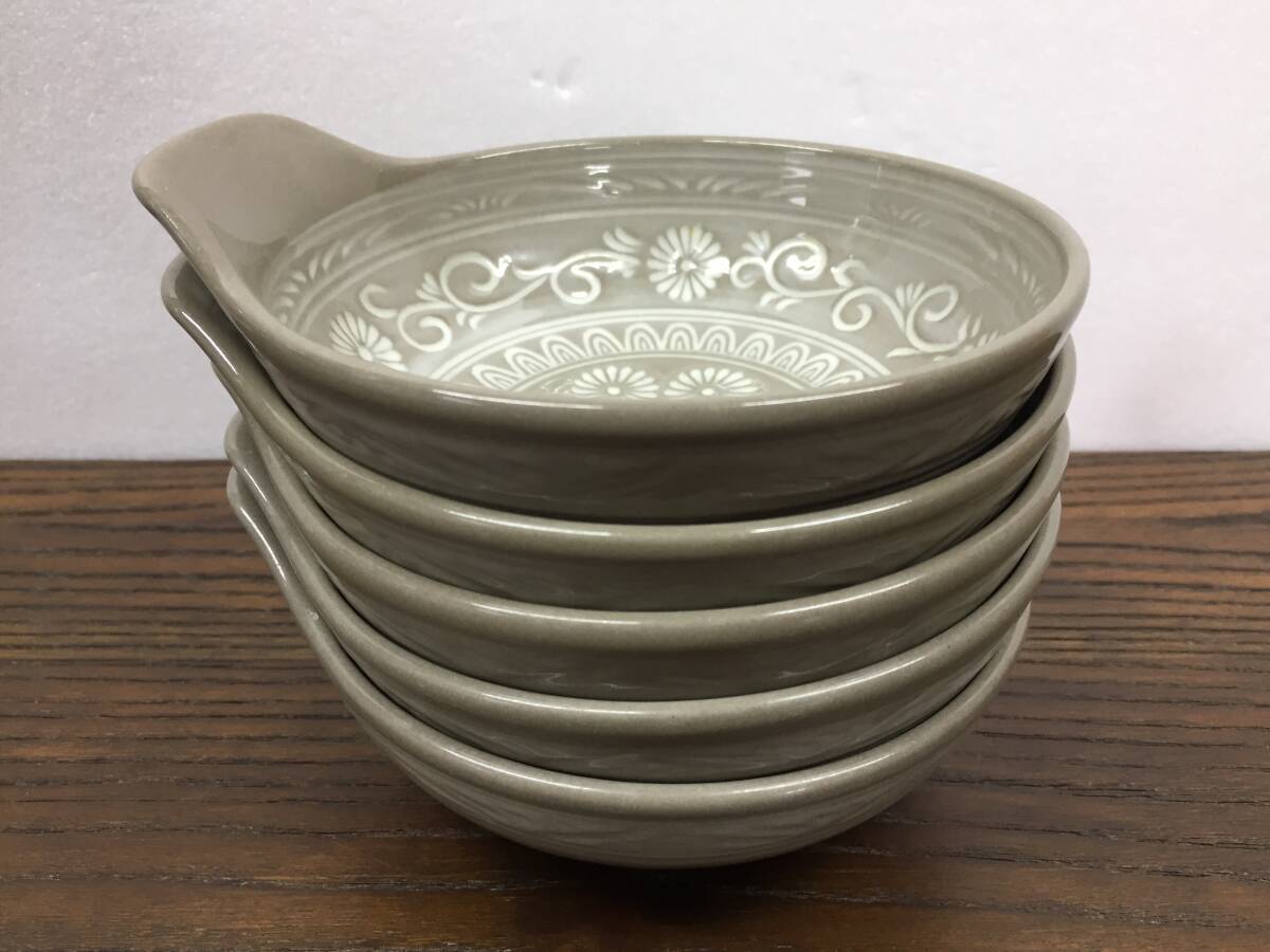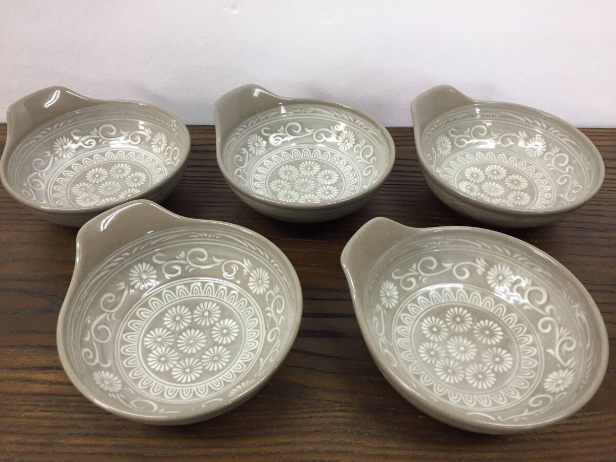 a◇三島 SUN CERAMICS サンセラミックス 鍋用取り皿 呑水 とんすい 持ち手付き 小鉢 5客セット 和食器 割烹 料亭 昭和レトロ 和陶器 | |