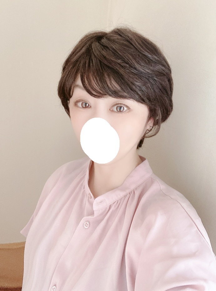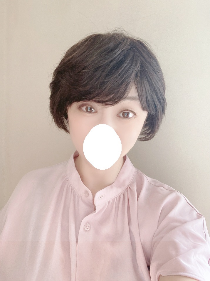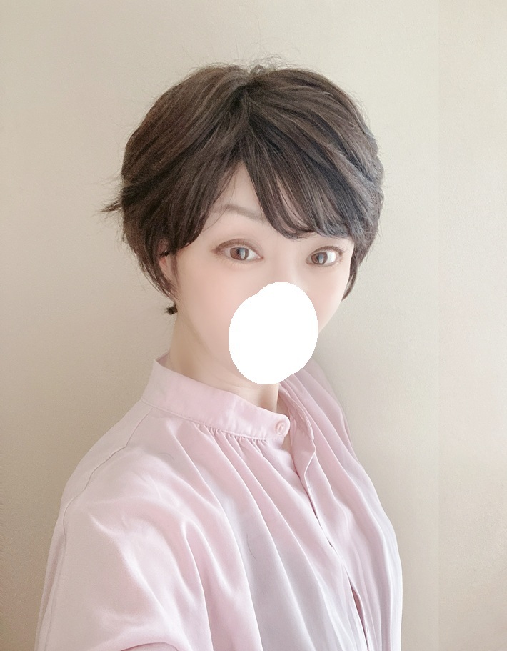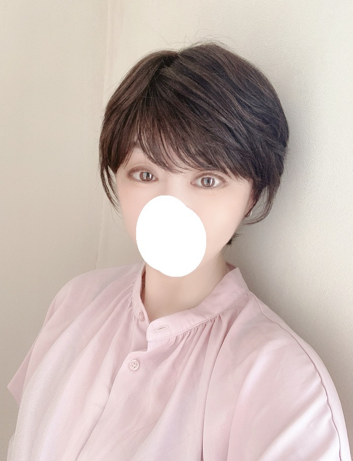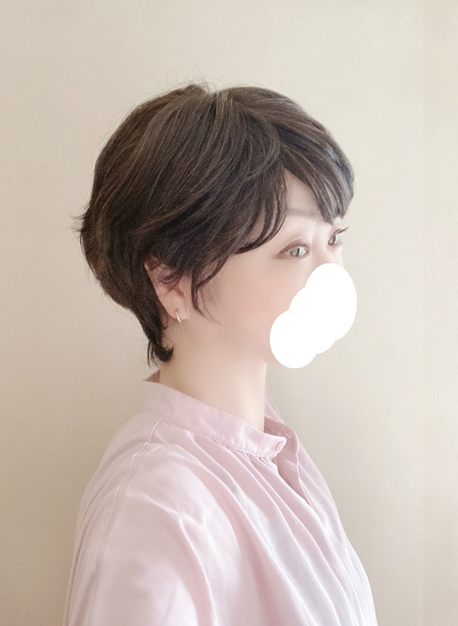 ■髪の長さ(全てキャップ際から):前髪約9.5cm、サイド(もみあげ)約8cm、ネープ(襟足)約8cm、トップ約12.5cm