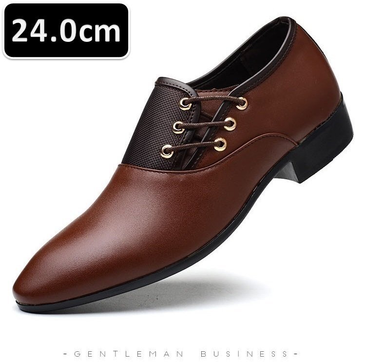 メンズ ビジネス レザー シューズ ブラウン サイズ 24.0cm 革靴 靴 カジュアル 屈曲性 通勤 軽量 柔らかい 新品 【228】