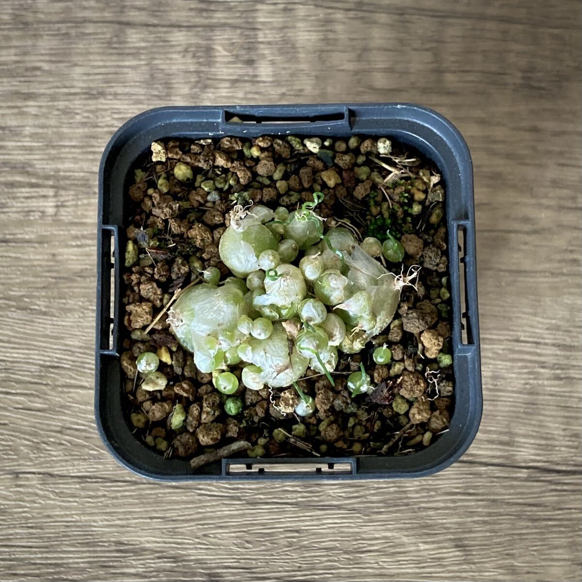 球根のサイズはわずか1cm程度と小さいながら、その特徴的な強く縮れた葉は他に類を見ない独特の美しさを持っています。