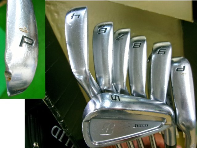 Pのソールに強めの擦れや欠けがございます。 グリップは純正外で各番手とも摩耗がございます。 フェース面は打球傷と当たり傷がございます。 バックフェースは当たり傷が適度にございます。 シャフトは各番手にこすれ傷と線傷が適度にございます。 |