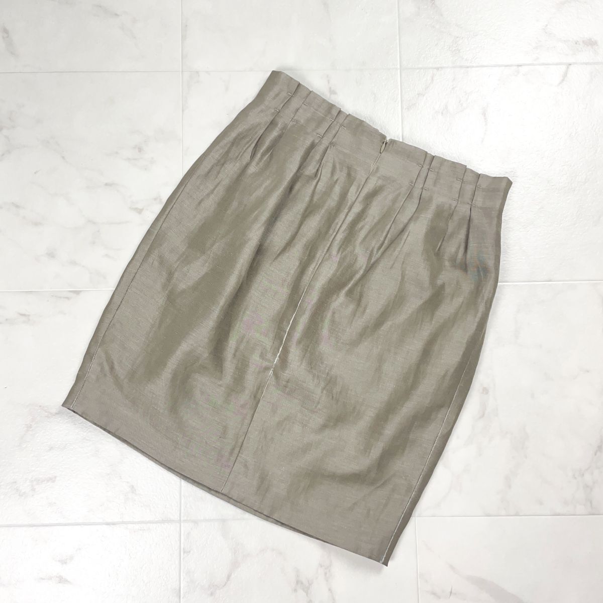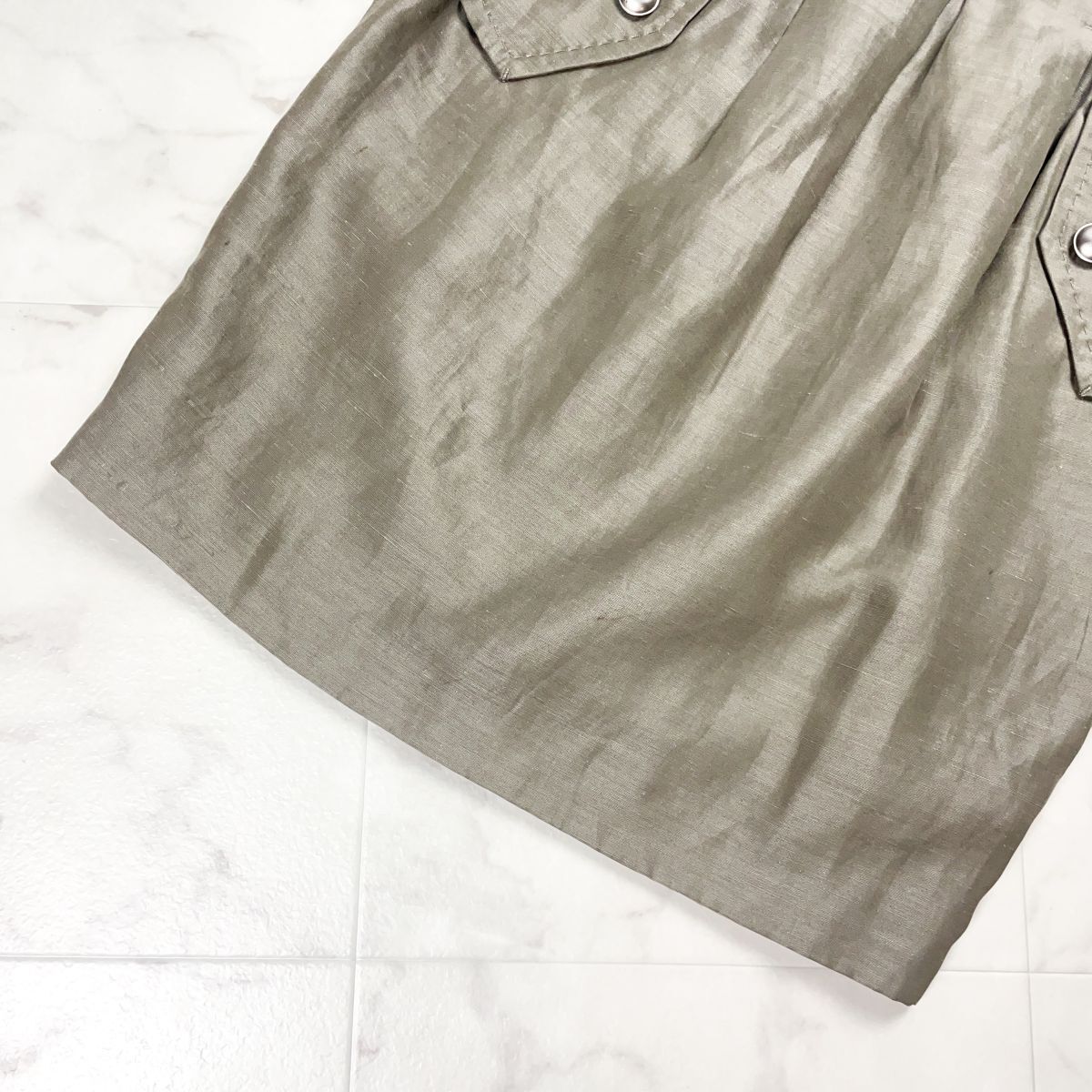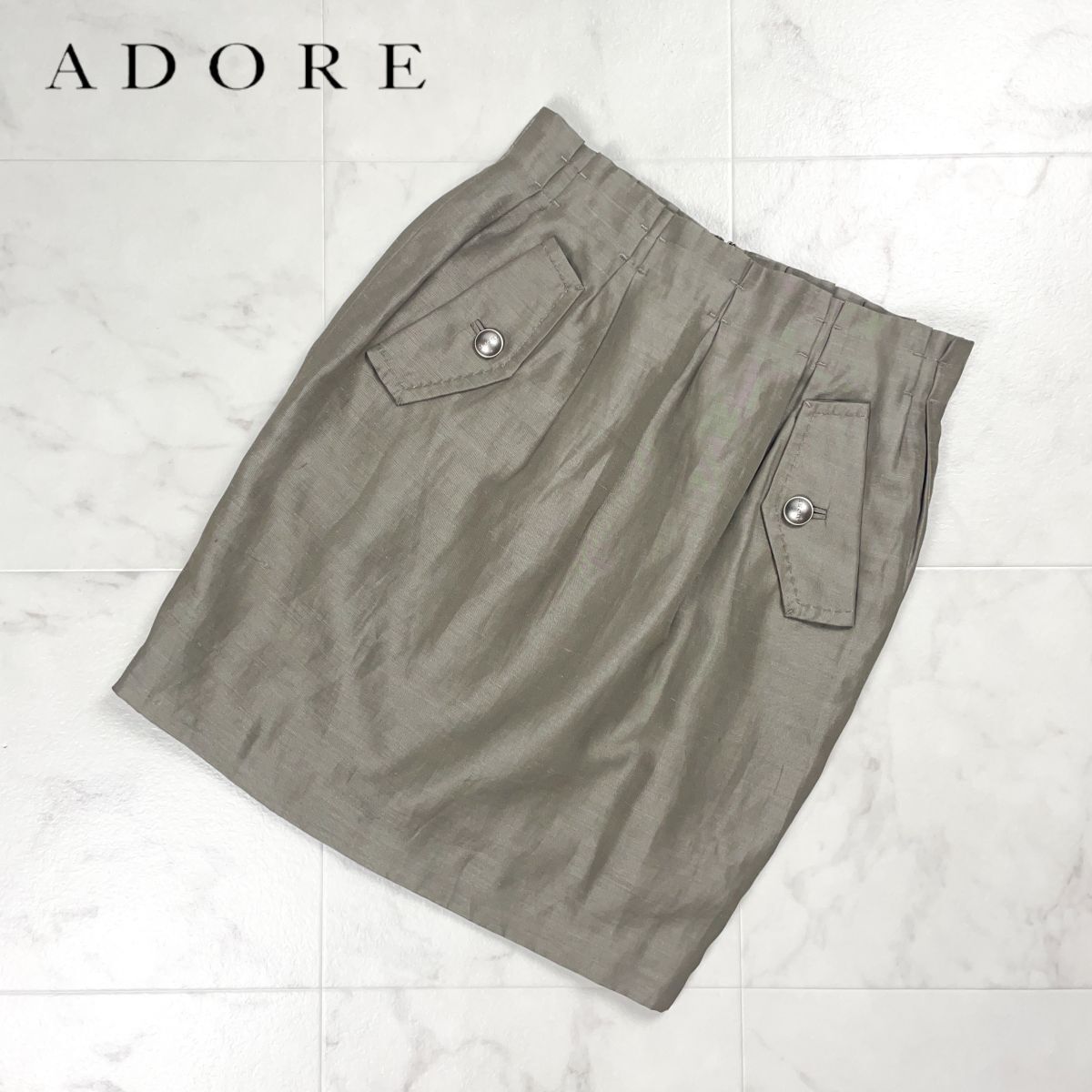ADORE アドーア リネン混 タックタイトスカート ロゴボタン 裏地付き カーキ サイズ38*FD962