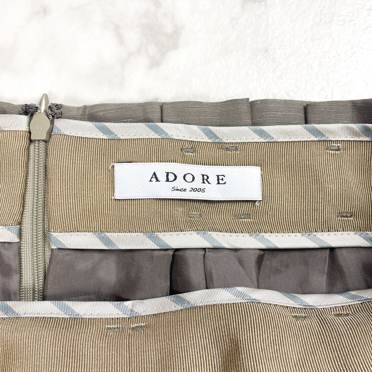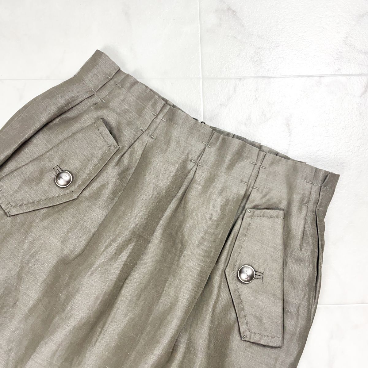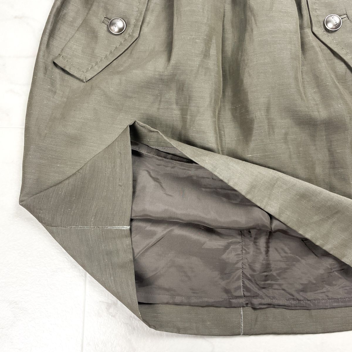 ADORE アドーア リネン混 タックタイトスカート ロゴボタン 裏地付き カーキ サイズ38*FD962
