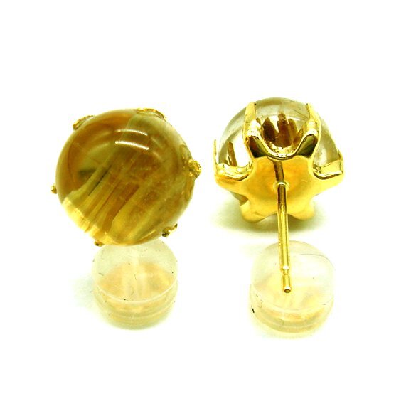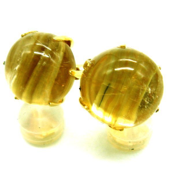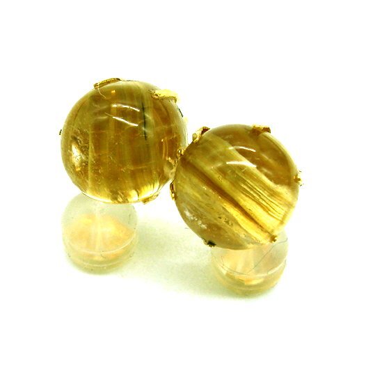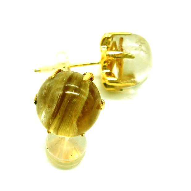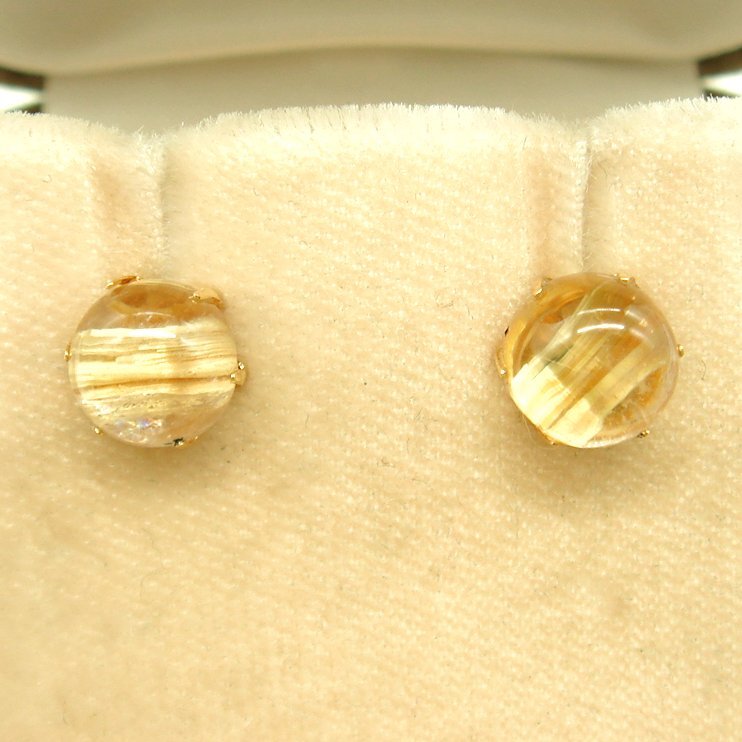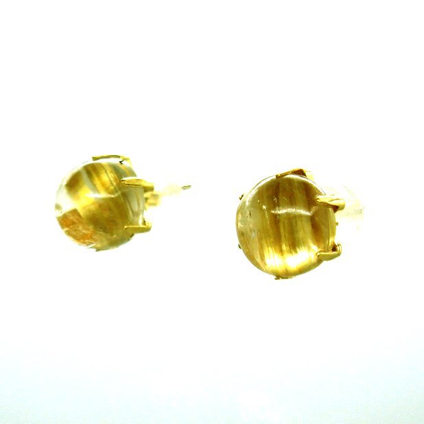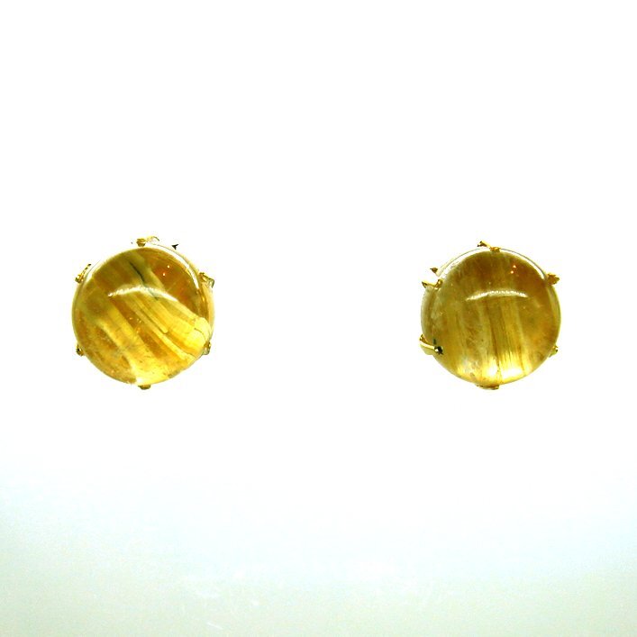 直径約 Φ8mmサイズ ラウンド カボッションカット 針水晶(ルチルクォーツ):2.00ct×2ヶ=合計 4.00ct