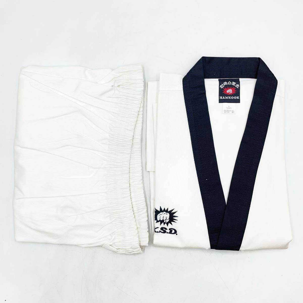 | 【仕様】 タイプ:KSD HANKOOK Taekwond APPROVED テコンドー 道着 190 身幅:約62cm 着丈:約85cm 総丈:約111cm ウエスト:約44cm |