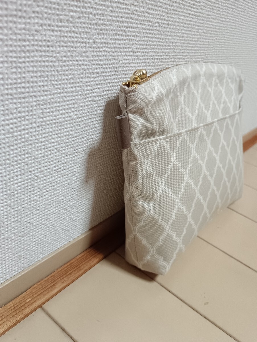 ☆ハンドメイド☆YUWA☆ベージュ&白色☆モロッカン柄ポーチ☆通帳ケース☆前ポケット有☆