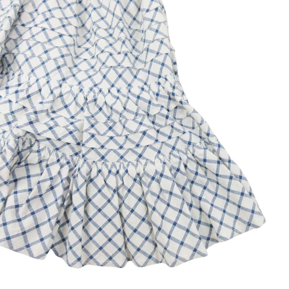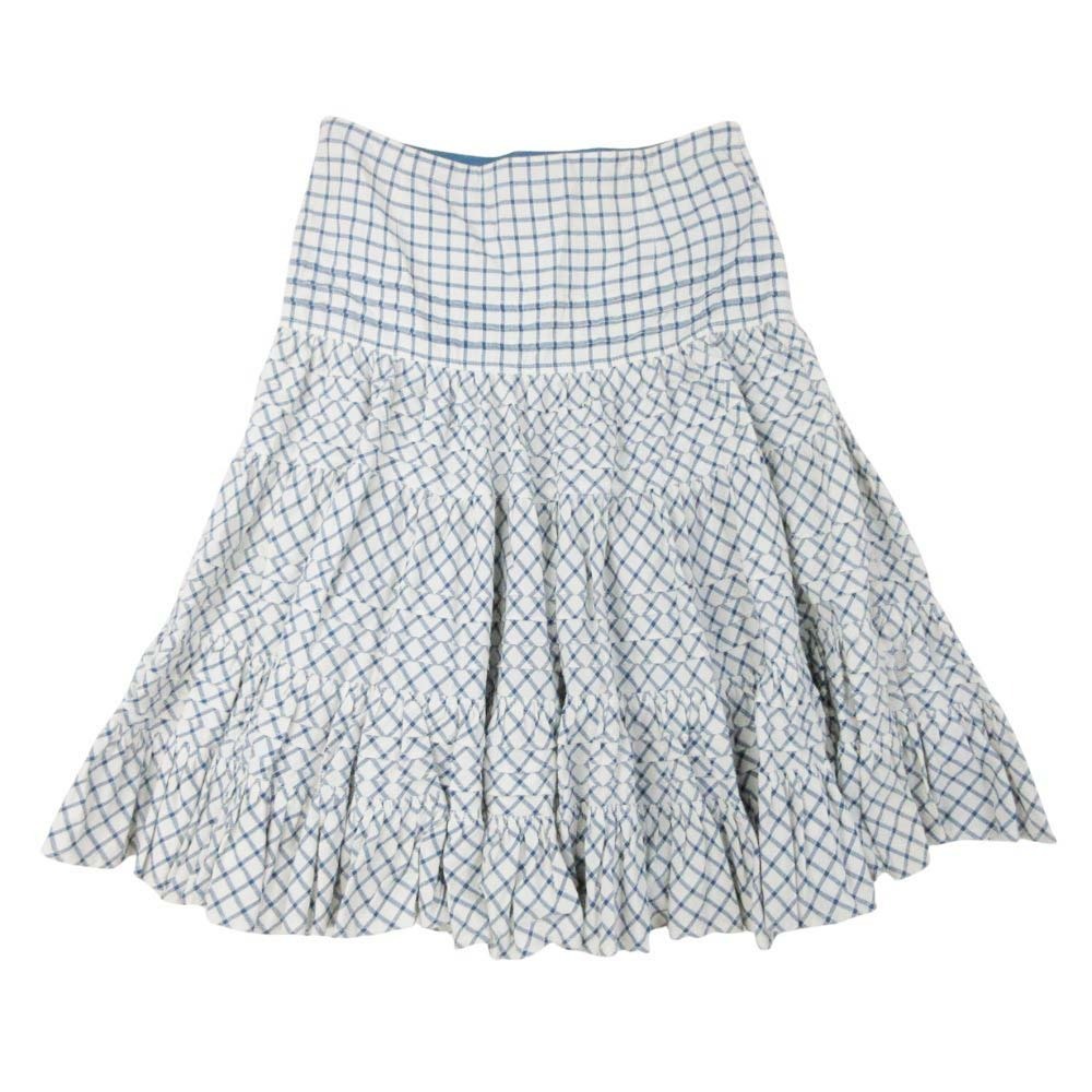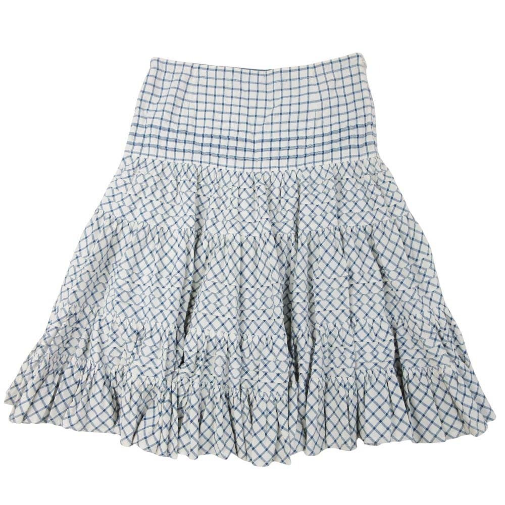 商品名:RALPH LAUREN ラルフローレン チェック ティアードフリル スカート フレア ギャザー コットン 7 オフ白×青