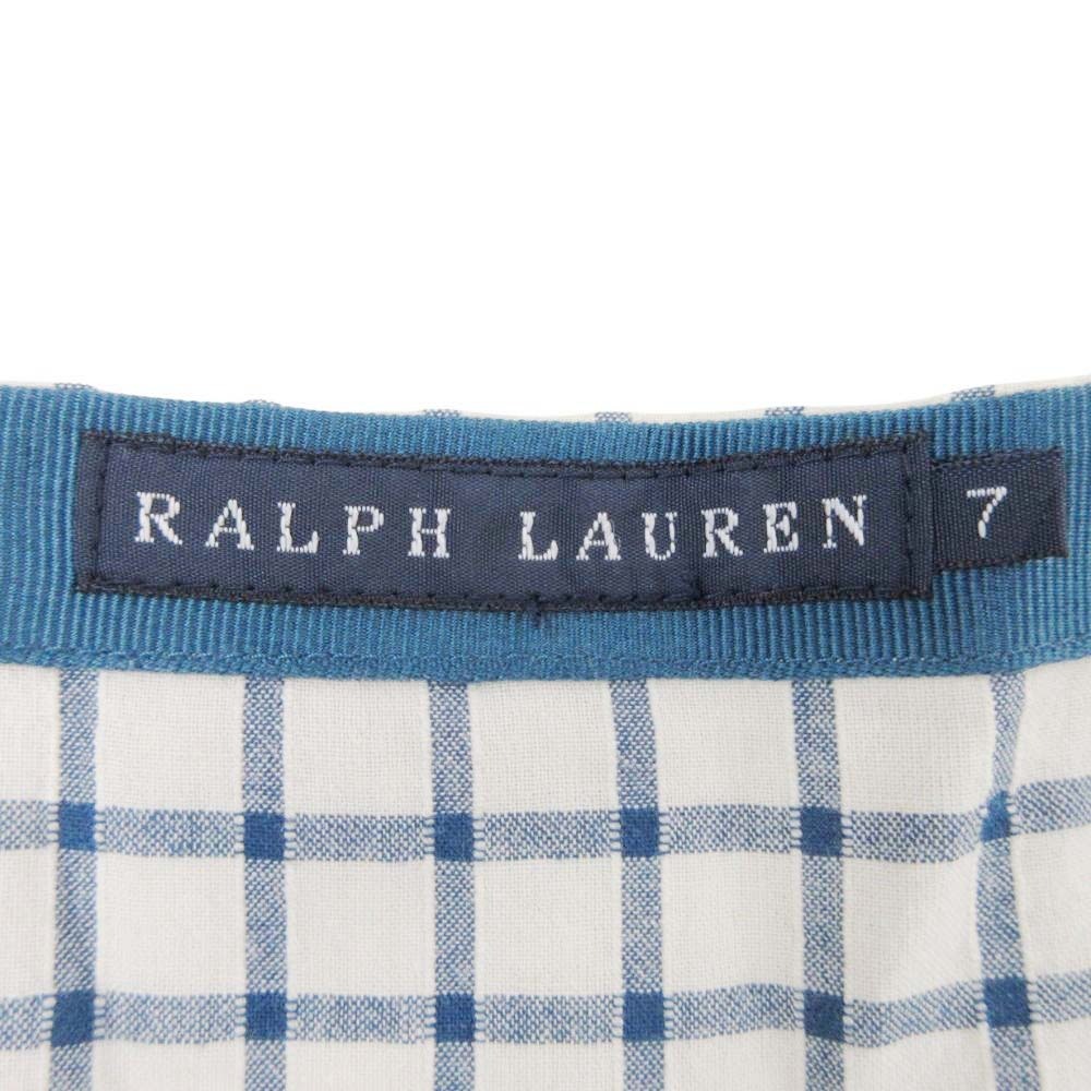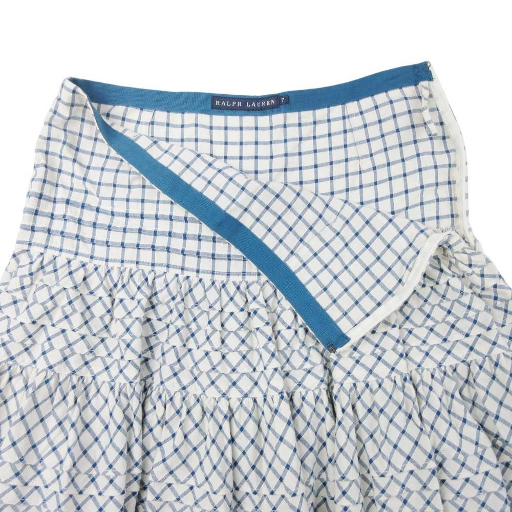 良品 RALPH LAUREN ラルフローレン チェック ティアードフリル スカート フレア ギャザー コットン 7 オフ白×青