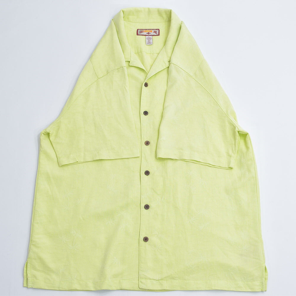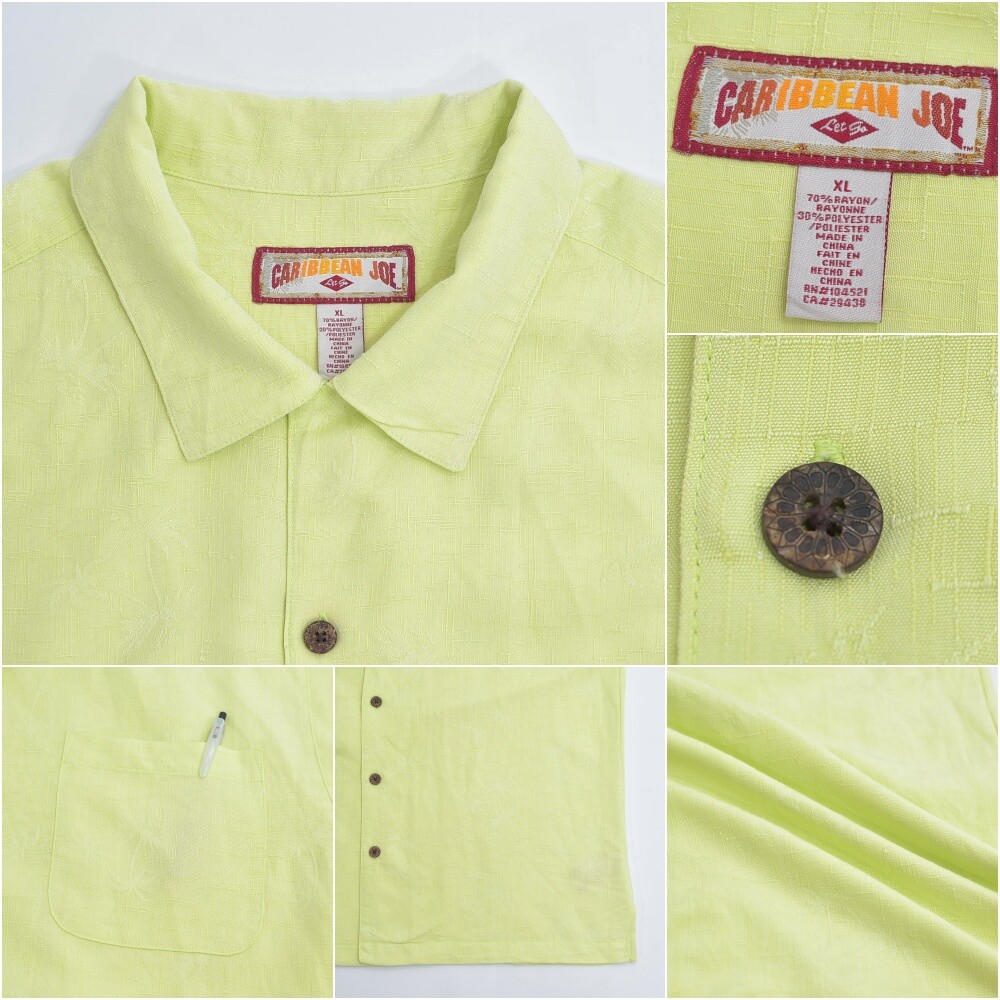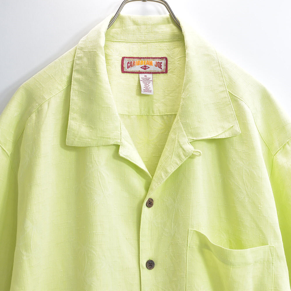 00s CARIBBEAN JOE カリビアンジョー アロハシャツ 開襟 ヤシの木柄 ジャガード ライムグリーン ヴィンテージ ビンテージ USA アメリカ古着 メンズXXL相当