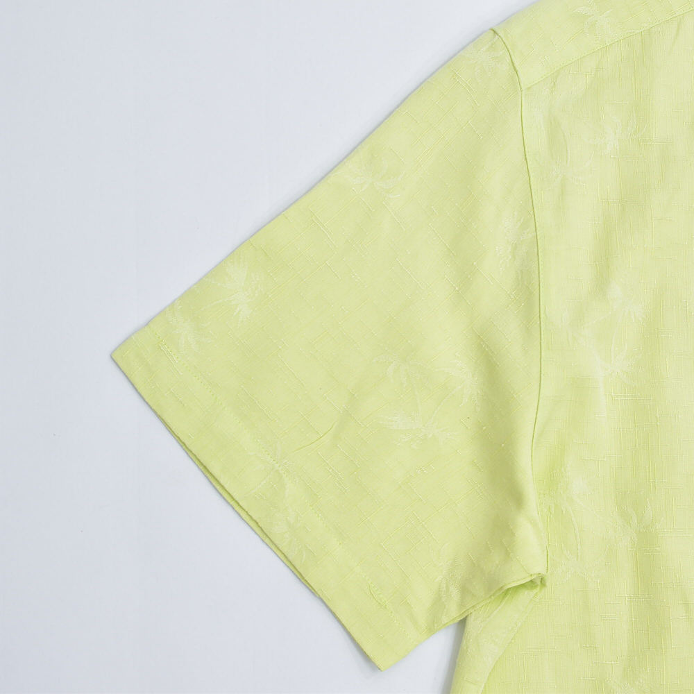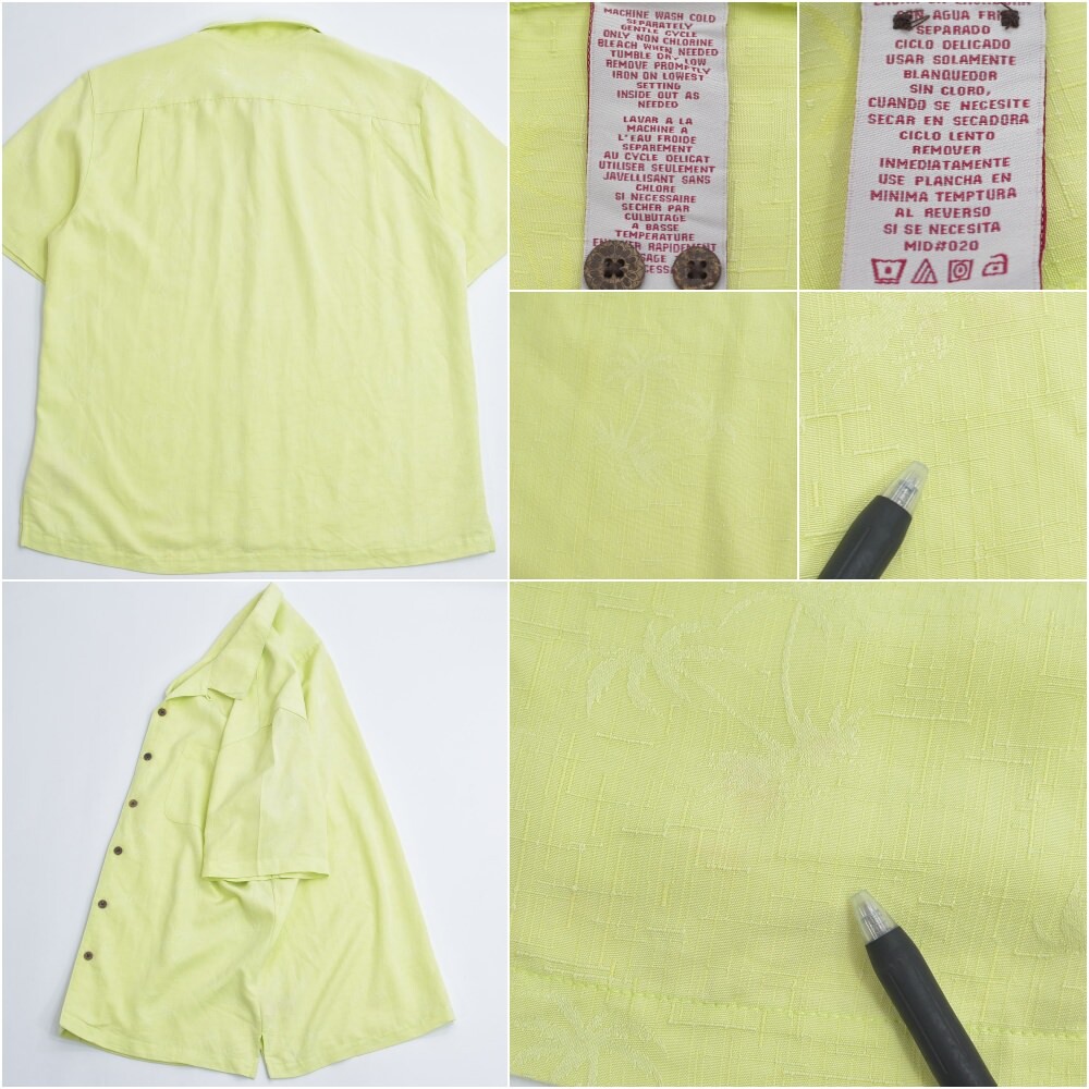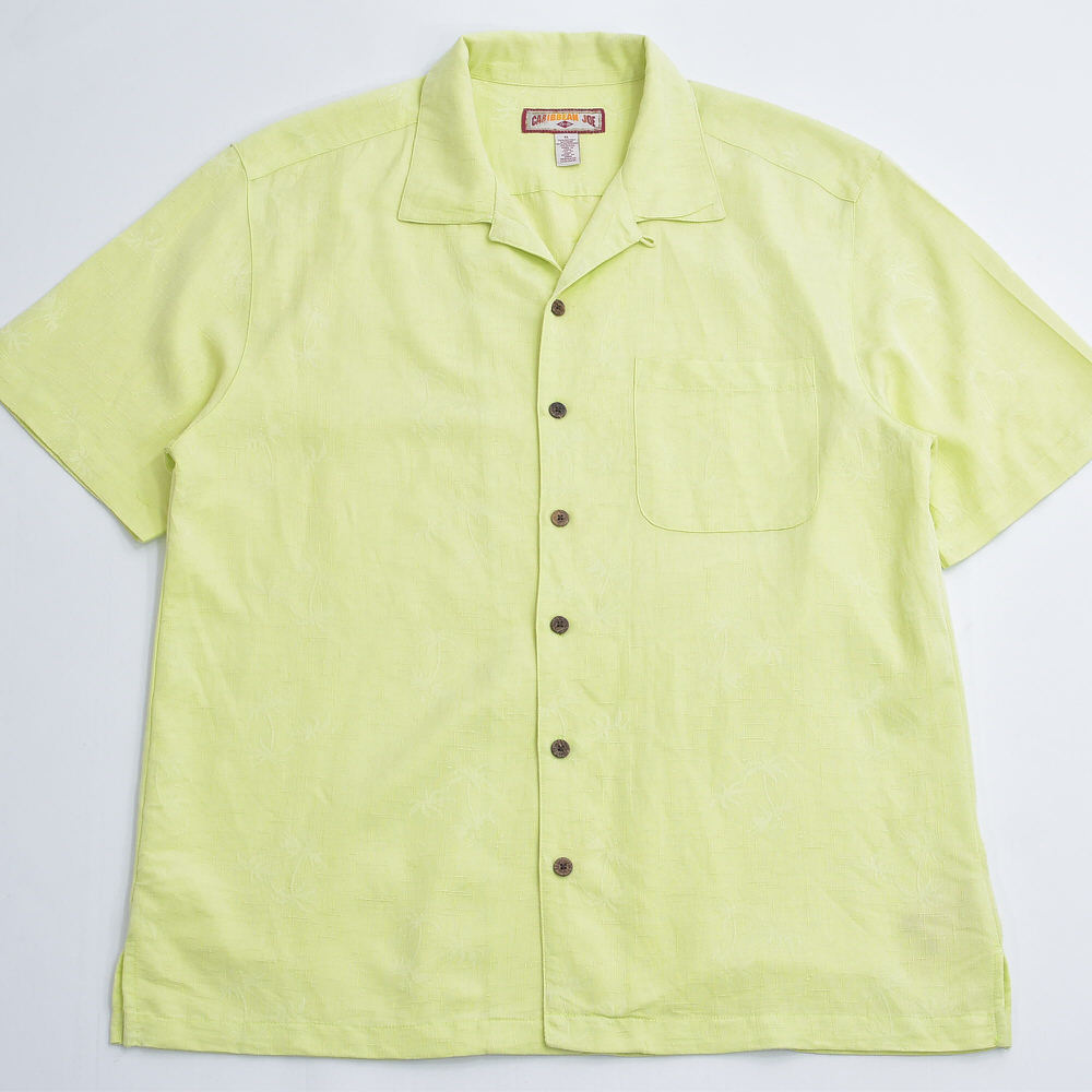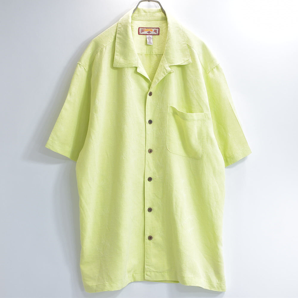 00s CARIBBEAN JOE カリビアンジョー アロハシャツ 開襟 ヤシの木柄 ジャガード ライムグリーン ヴィンテージ ビンテージ USA アメリカ古着 メンズXXL相当