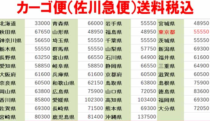 请参考商品网页上的说明,若无说明,一般普通3KG左右的普通件700日元左右,超大件2000日元至1万日元不等。下单前有疑问的请咨询客服。
