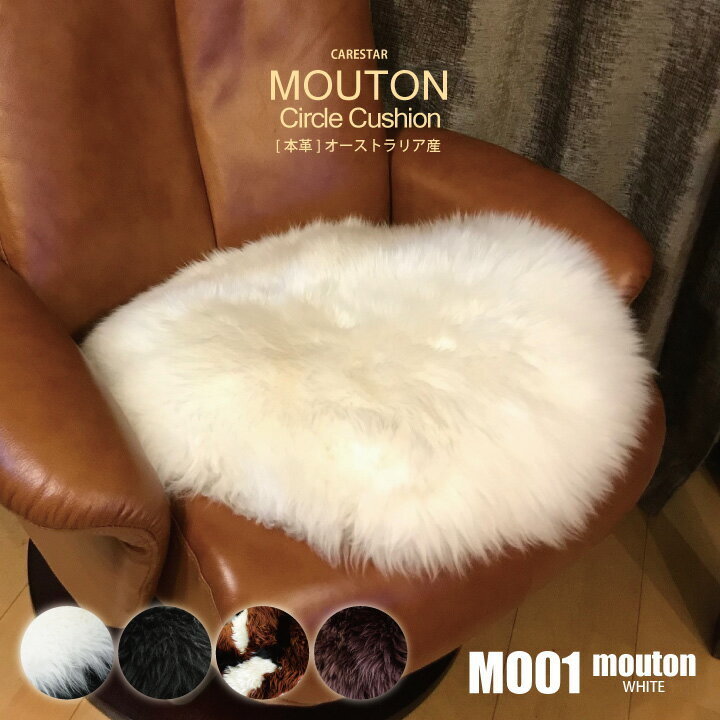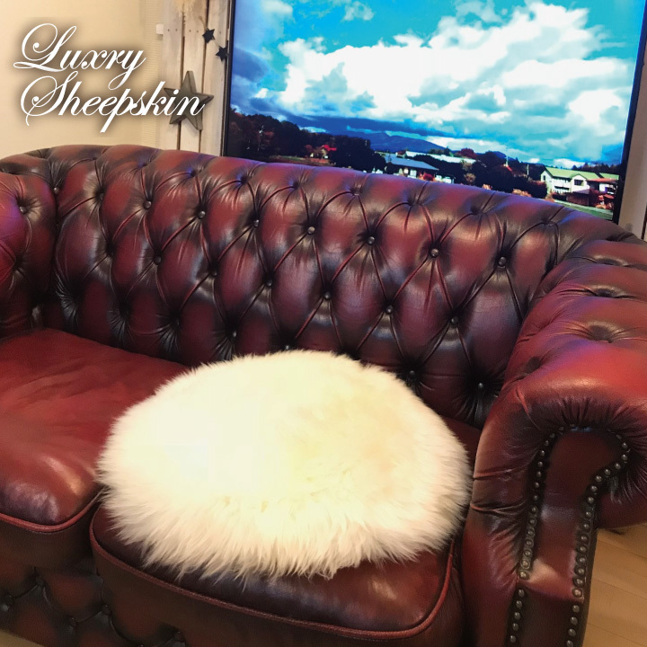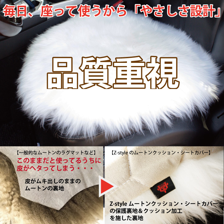 商品名 ■Z-style ムートン【本革】羊毛 ロング [長毛] サークル型(円形)クッション ホワイト