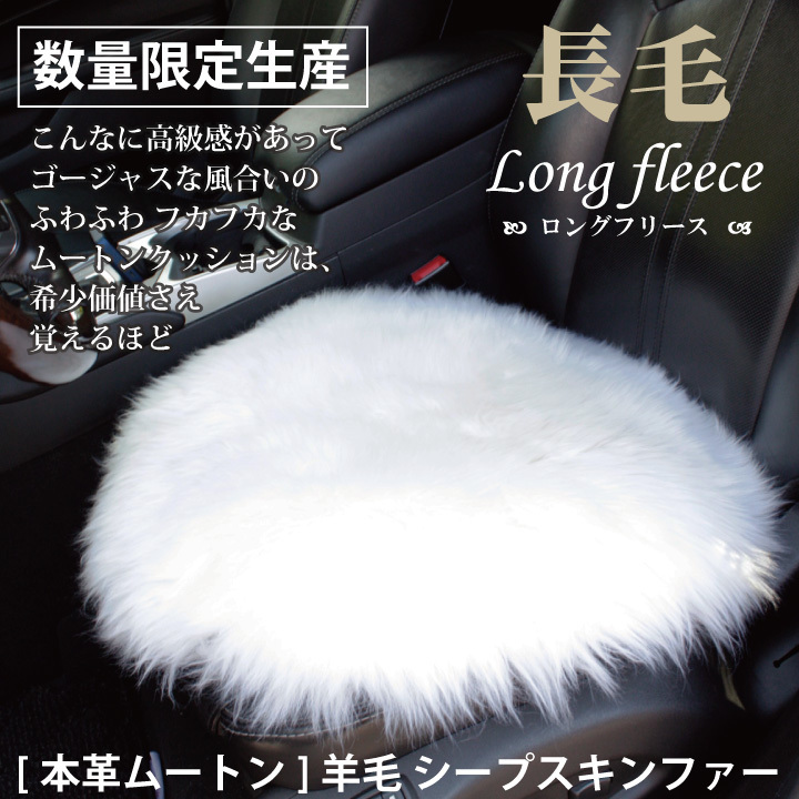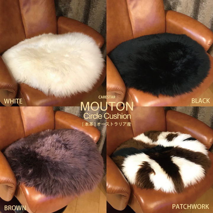 送料無料 本革 長毛 丸型 ムートン サークル クッション 天然 シープスキン 裏地バッグ加工 中綿クッション付き