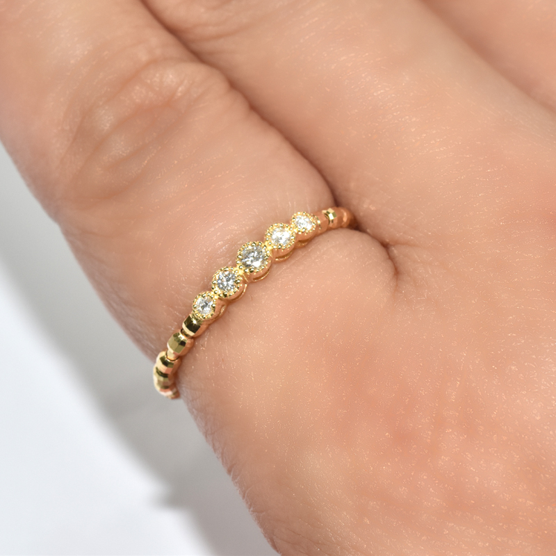 商品名 | K18 ストレッチリング ダイヤモンド ミル打ち 花形デザイン |