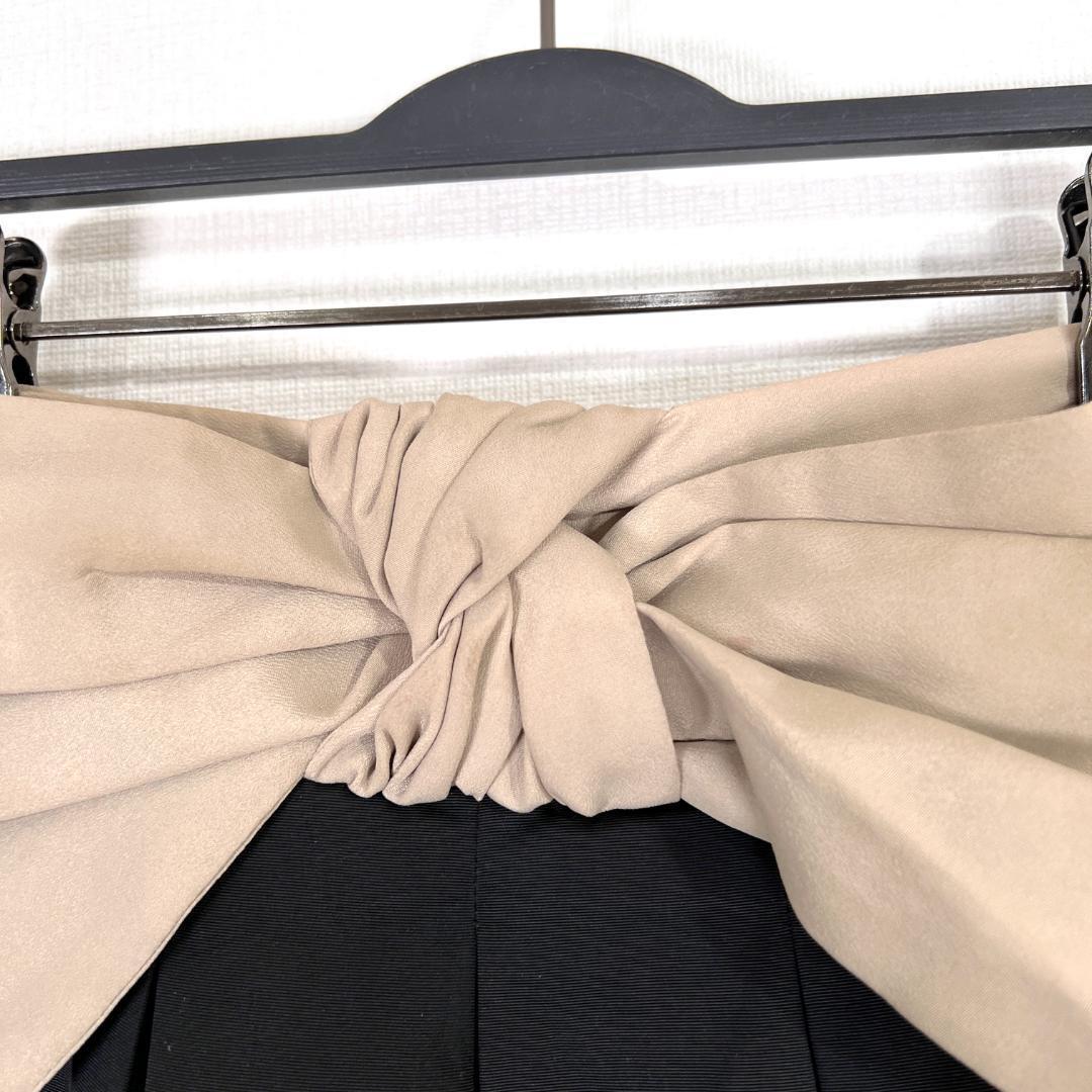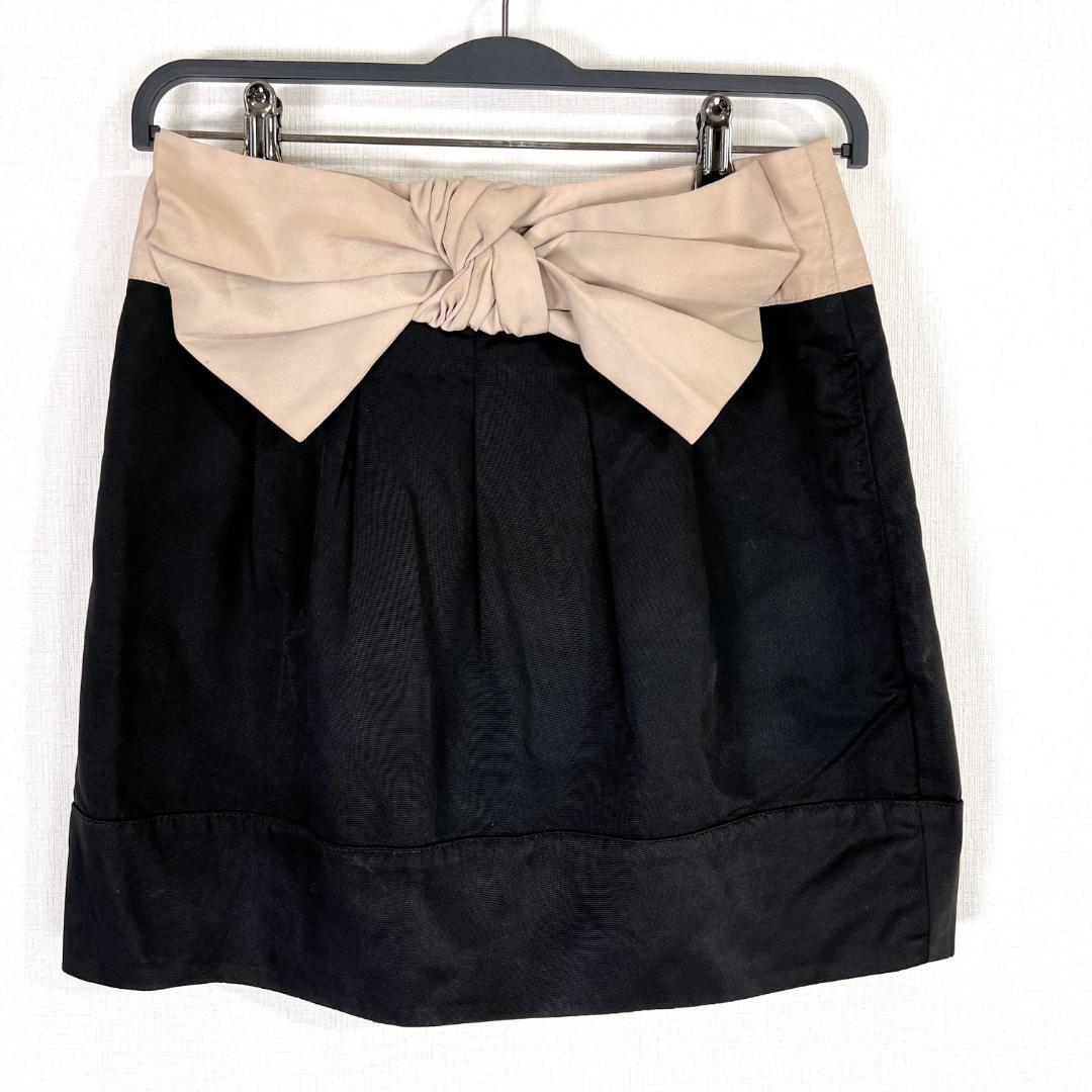 女性用の黒 ブラック系のベージュのリボンデザインの無地スカートです。リボン付きでかわいく、おしゃれなデザインです。中古品ですが目立つような傷や汚れもなく、まだまだ使っていただけます。古着 ナノユニバース Parsley Co. LTD
