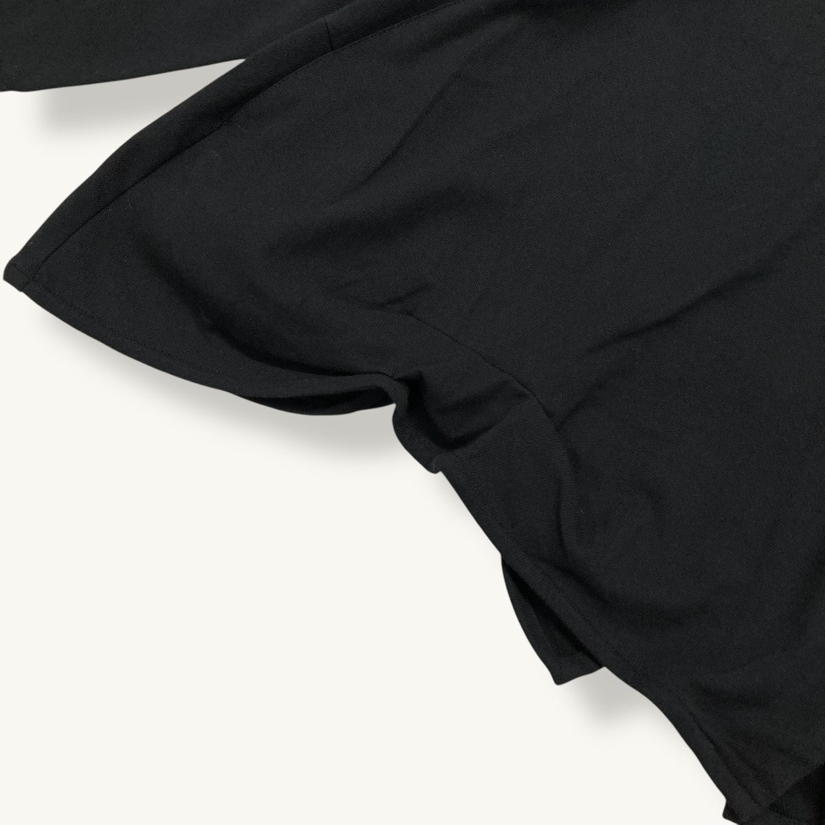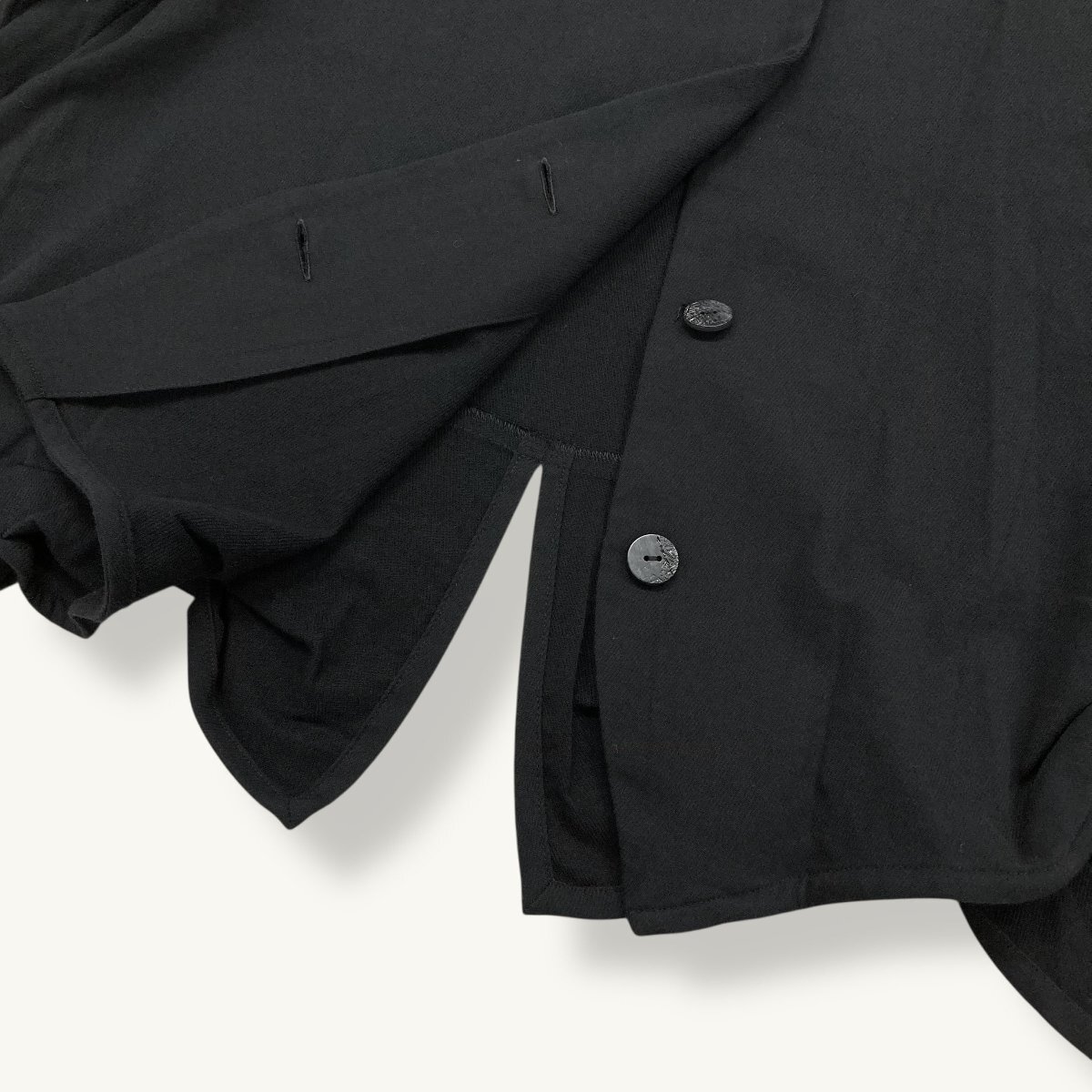 裾は左右をつまんだデザインのイレギュラーヘム。