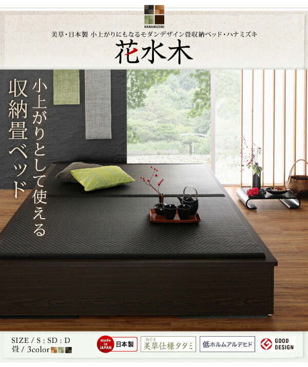 お客様組立 美草・日本製 小上がりにもなるモダンデザイン畳収納ベッド 花水木 ハナミズキ ワイド 40mm厚 セミダブル【フレームカラー:ダークブラウン】です。