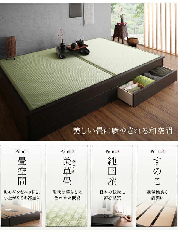 お客様組立 美草・日本製 小上がりにもなるモダンデザイン畳収納ベッド ワイド 40mm厚 セミダブル