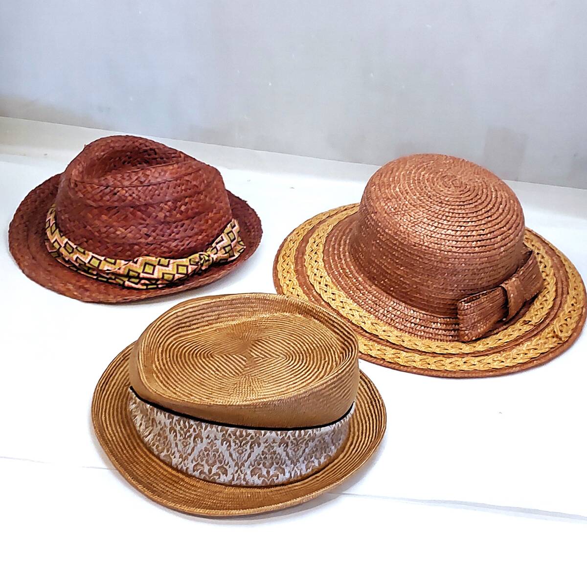 作家物 オオタアキ (画像2~3)頭囲約56.5cm milsa ミルサ (画像4~5)頭囲約55.5cm アルプス・カワムラ (画像6~7)頭囲約54.5cm 素人の採寸ですので、多少の誤差はご容赦くださいませ。 スレによる繊維の飛び出しなどが見られます。 遠くから見ると目立ちにくいですが、全体的に飛び出しが見られます。 3点を重ねて発送いたします。画像8 | ||||