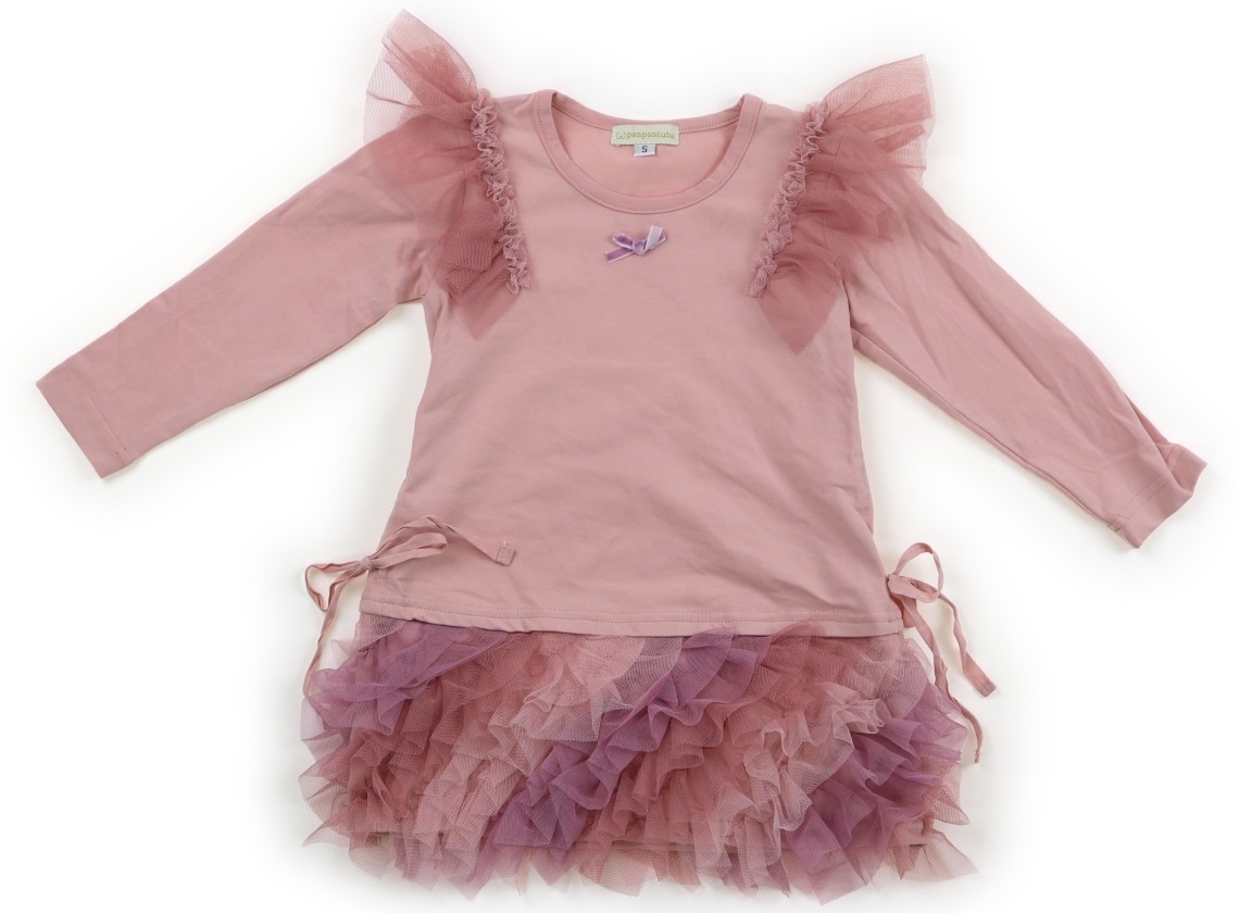 ストレッチ性のあるカットソー地、スカート部分はフリルが重なっています。胸のリボンはベルベット地。やや毛羽立ちありますが、目立った汚れはありません。